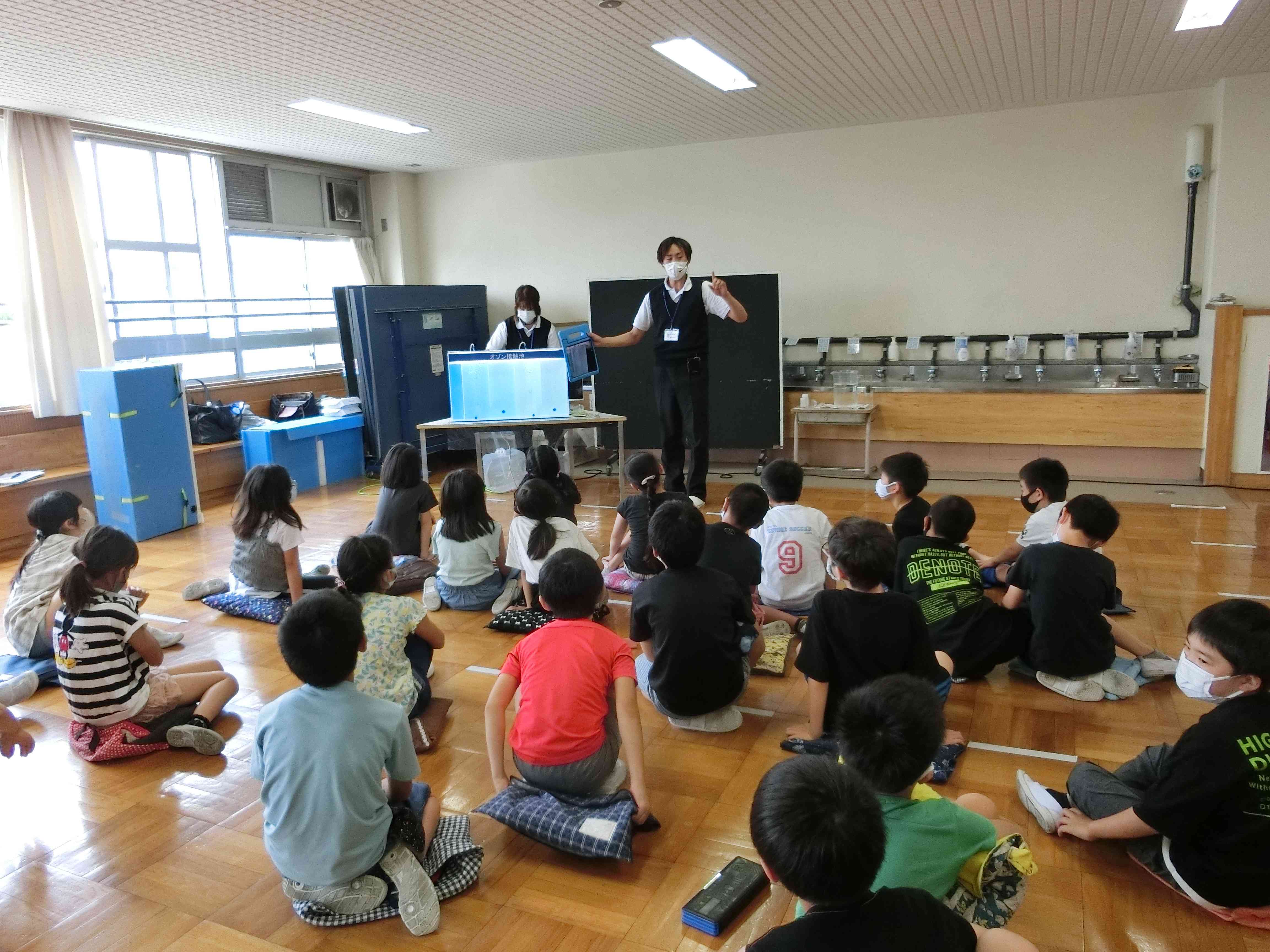 6月24日(木)に東京都水道局の方に来ていただいて、水道について学習をしました。ツアー形式で楽しく話をしていただいたり、水がきれいになる仕組みを実際に見ることができたりして、子供たちも興味をもって学ぶことができました。 また、水を大切にする意識も高まったと思いますので、おうちで少しでも節水の実践をしてみてください。