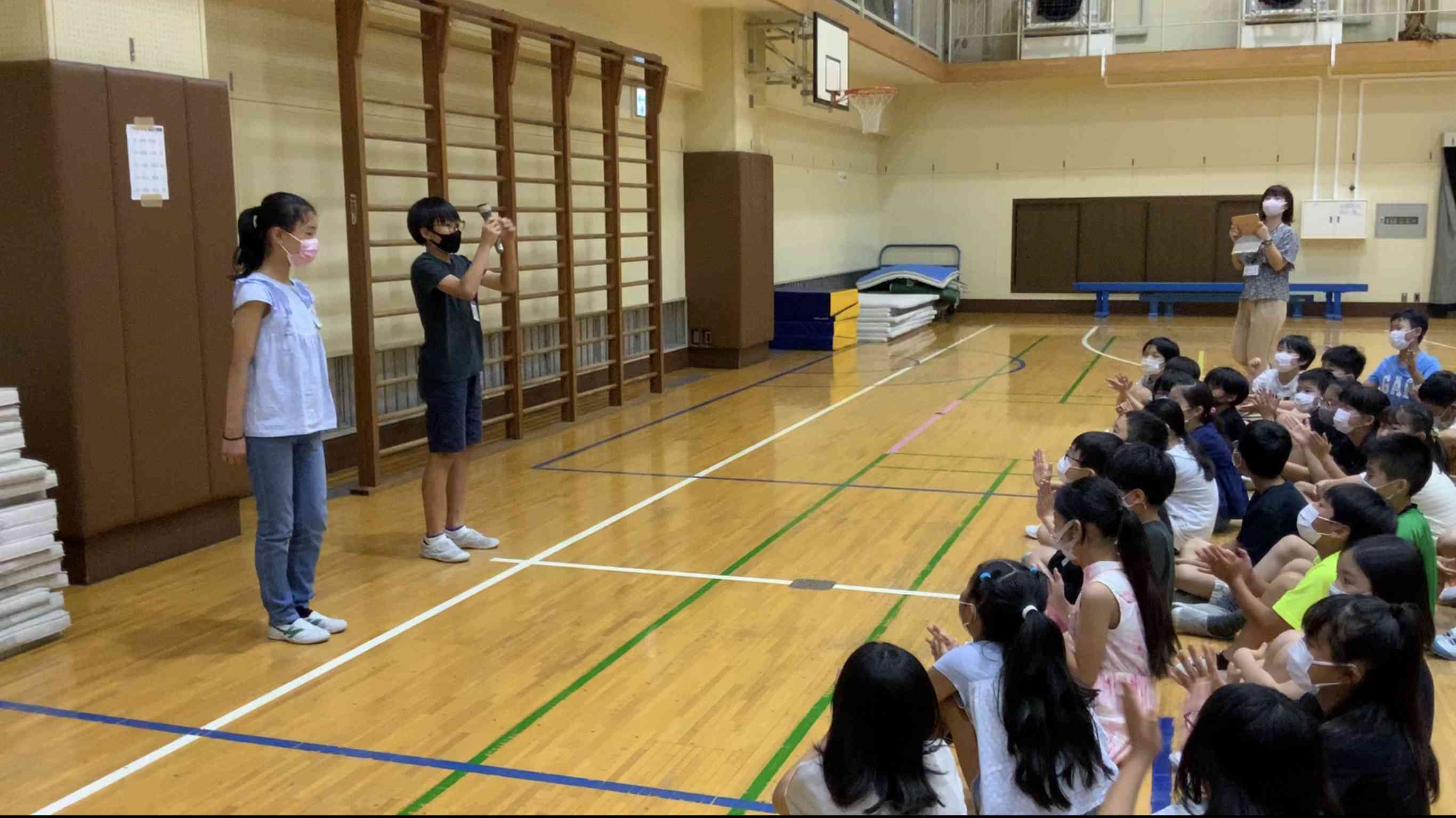 普段からクラス関係なく遊んでいる5年生ですが、それぞれで考えた遊びを体育館で行いました。 ルール説明も準備も自分たちで行い、白熱しながらも笑顔で終わる学年交流をすることができました。 夏休み前にすてきな思い出をつくることができました。