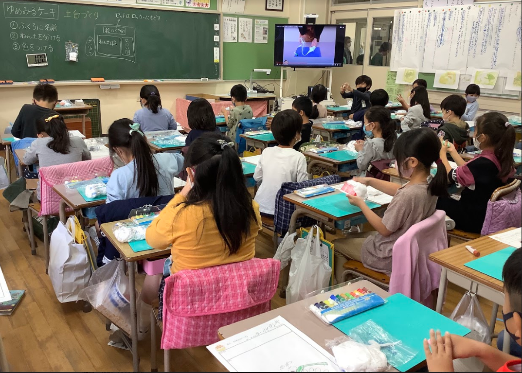 10月は展覧会に向けて「はがしてびっくり!カラフルはんが」や「ゆめみるケーキ」の製作を行いました。 「はがしてびっくり!カラフルはんが」では、自分でテーマを決め、ローラーで色を着けたり、シールを切り貼りしたりしました。シールをはがして、自分の作品が完成した時は「想像よりきれいにできた!」を嬉しそうな声も多く聞こえました。 「ゆめみるケーキ」では、着色した紙粘土を丸めたり伸ばしたりしながら、空き容器にくっつけて、材料を生かした色鮮やかなケーキを作っています。完成に向けて、細かい色や形にこだわり、集中して作品を作っています。【添付ファイル】