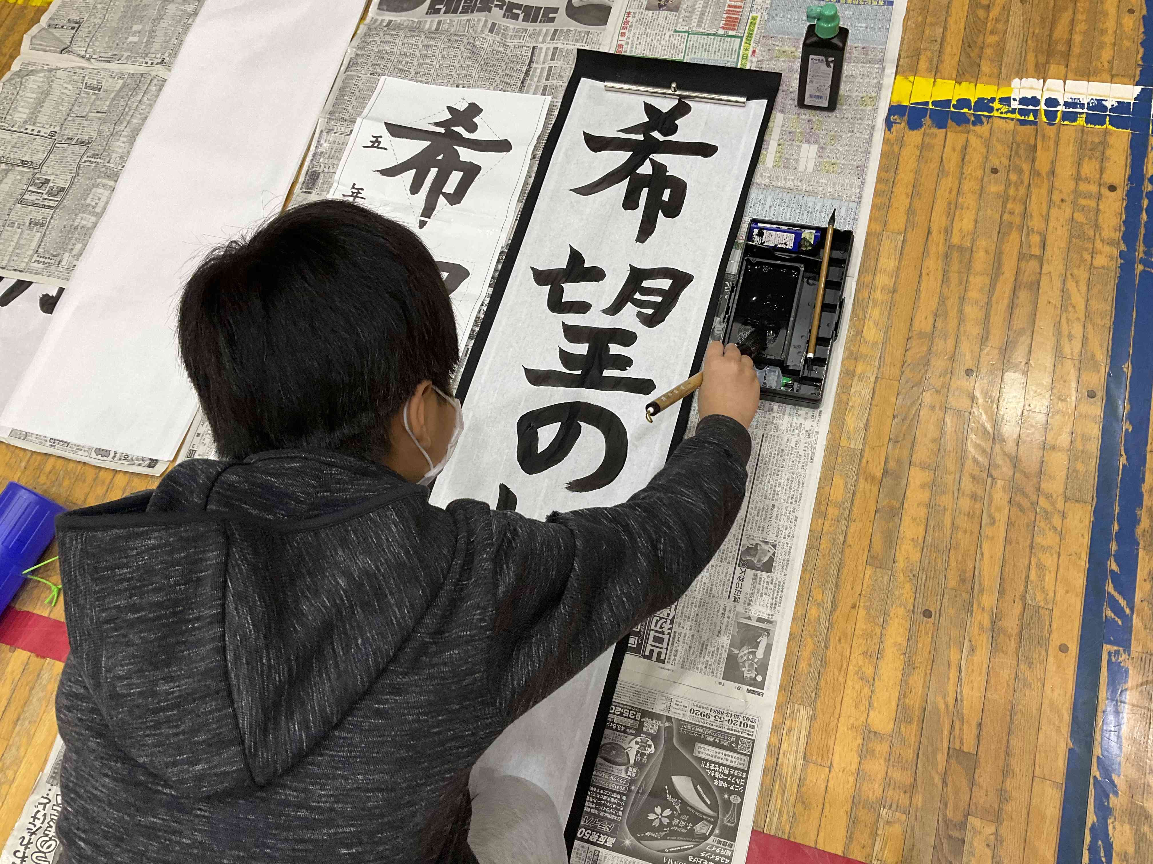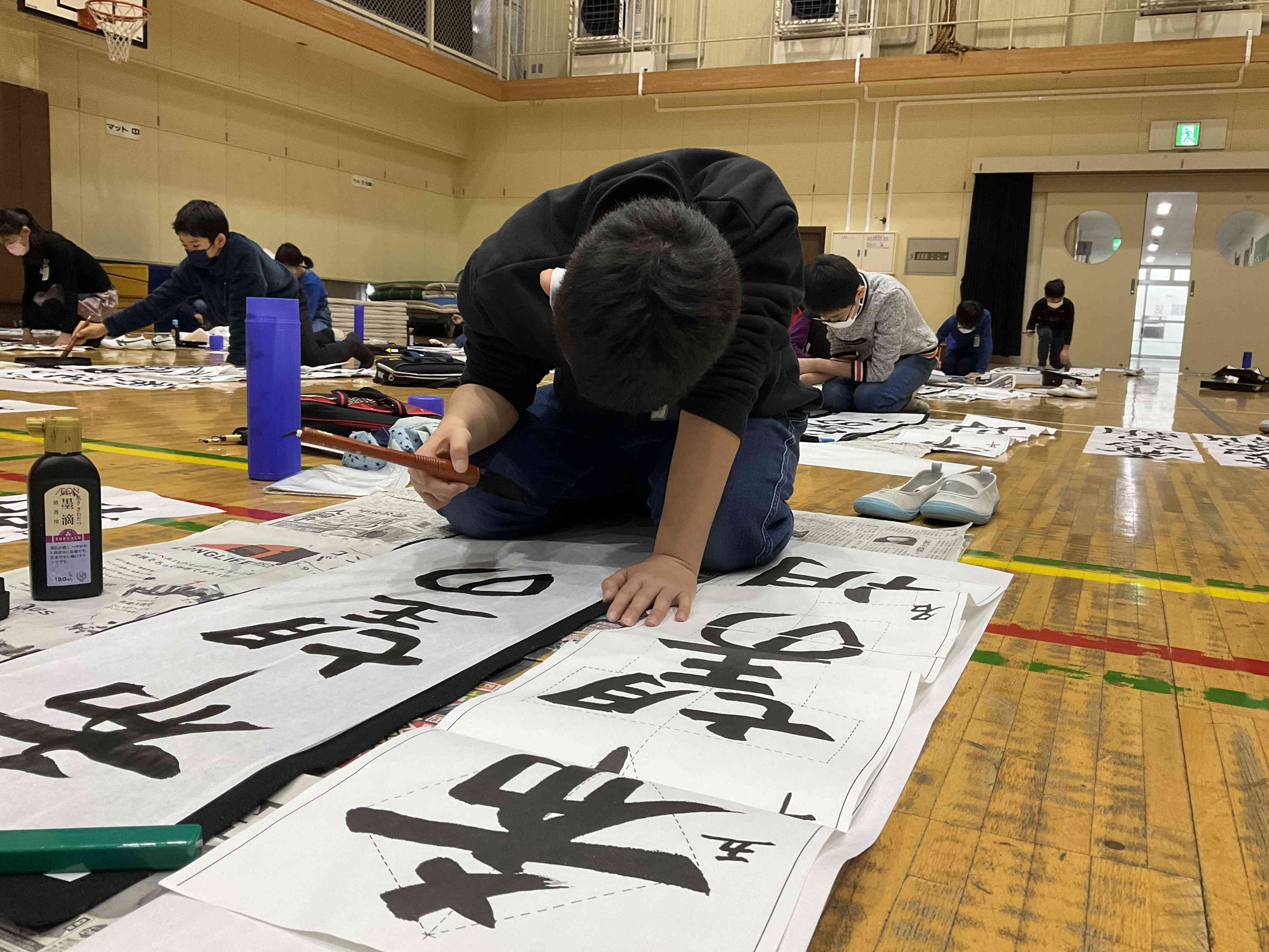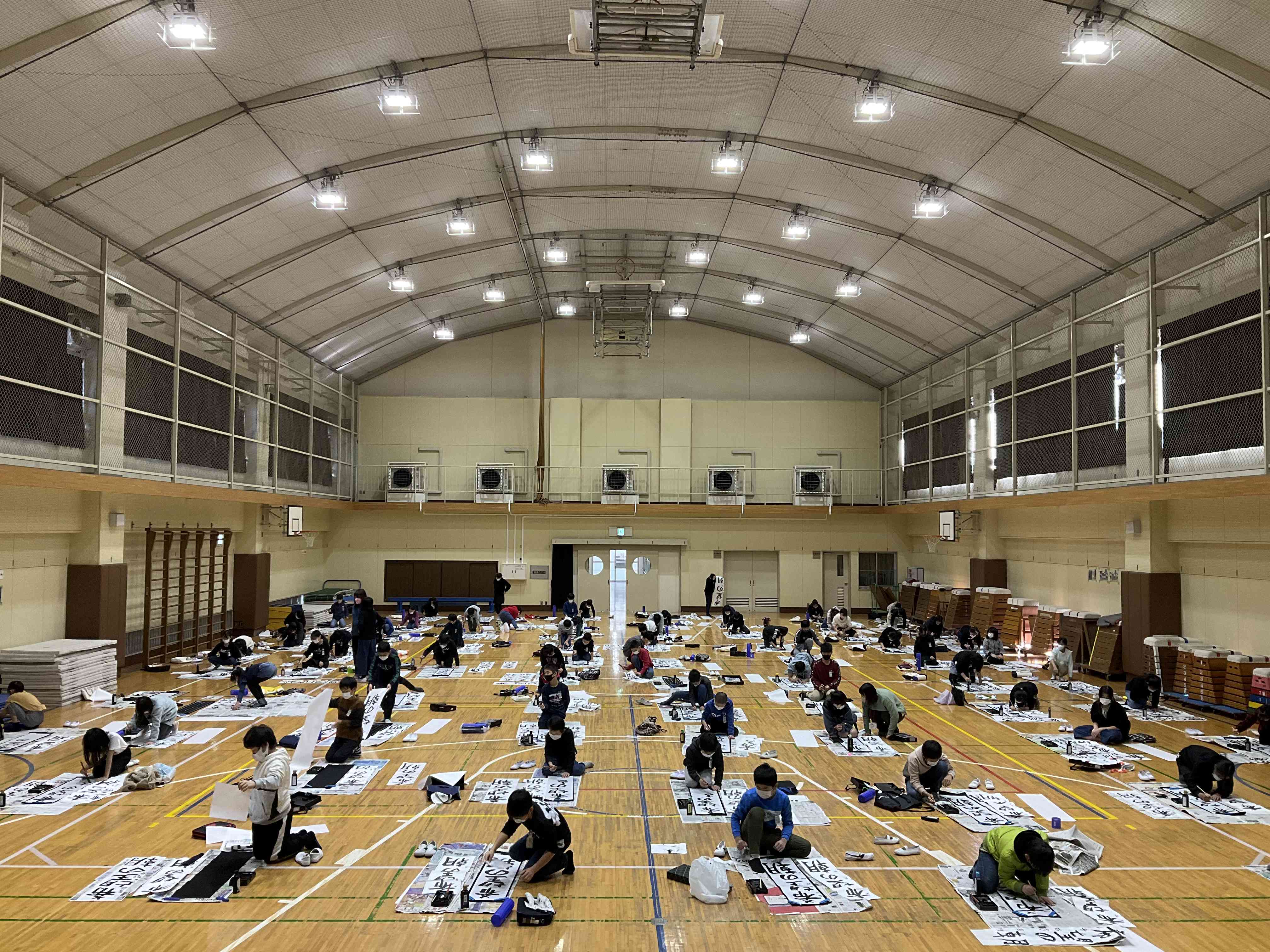 体育館に集まり、「希望の朝」を一人一人集中して書きました。 気持ちを込めて字を書くためには、静かな環境が必要であることを話しました。 人間の集中力には限界がありますが、子どもたちは、字を書いている時だけでなく、片付けも静かに行うことができました。 心も体も成長してきている5年生。とてもすてきな態度でした。