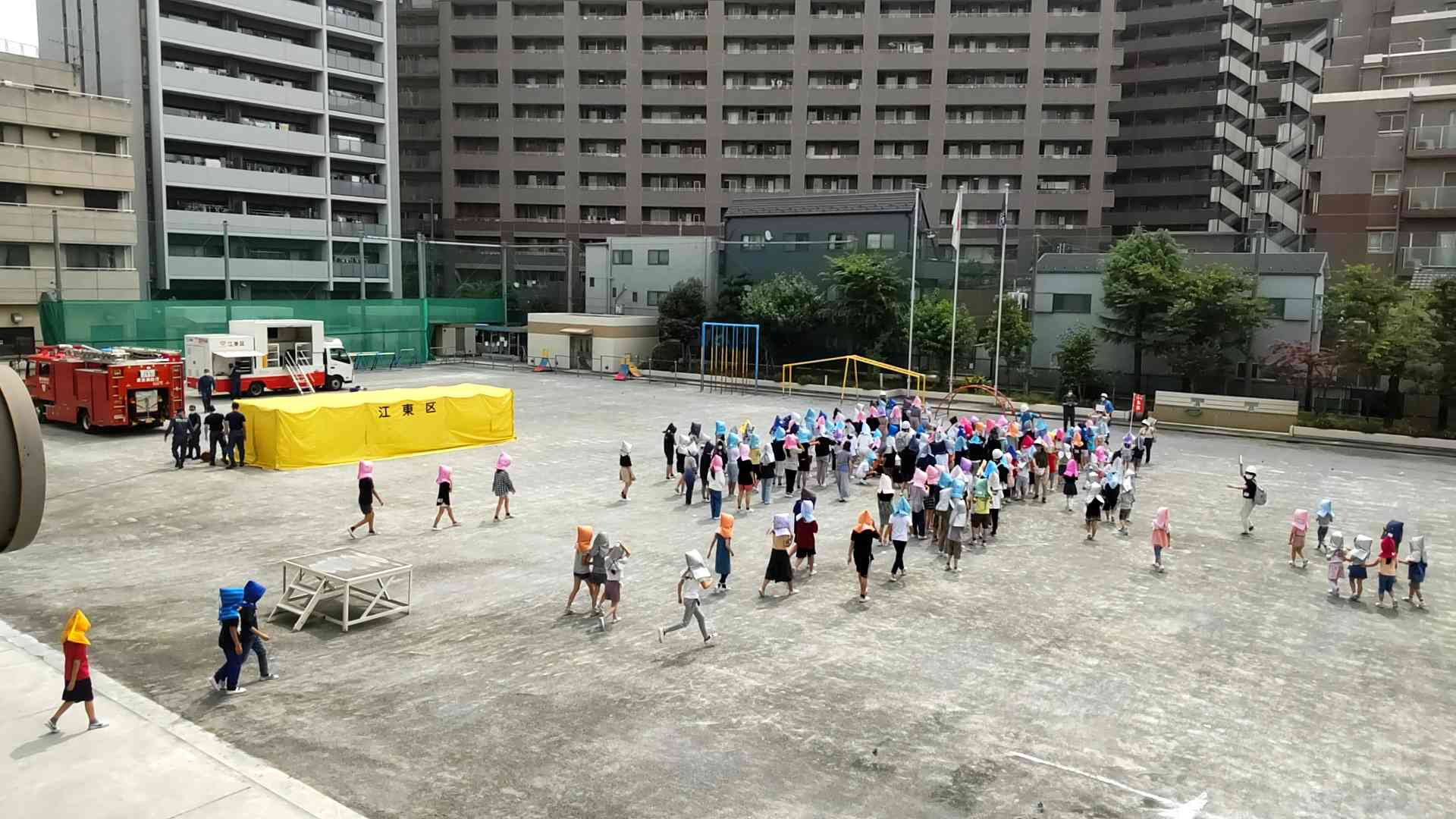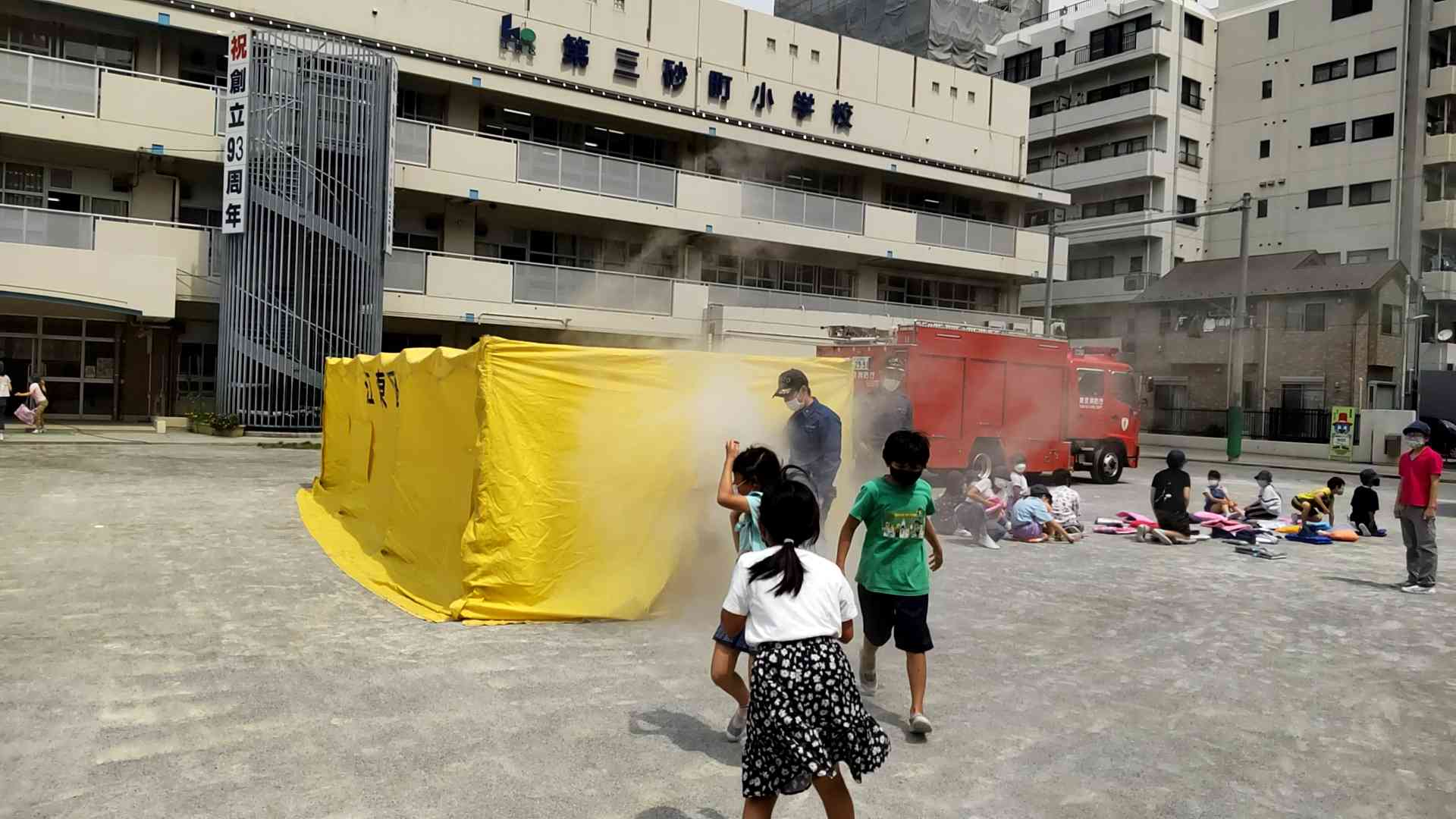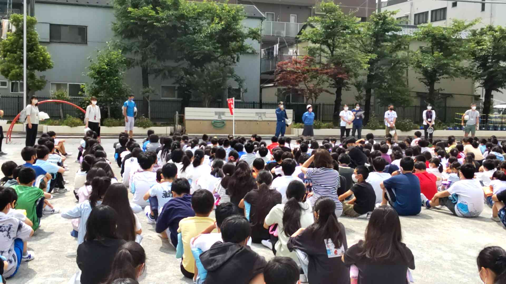 今年度3回目の避難訓練がありました。 内容は、地震による避難です。 今回は、城東消防署の方にも来ていただきました。 4年生は、昨日石川県で起きたのと同じ震度6弱の揺れを起震車で体験したり、煙ハウスで火災時の煙が充満している中での避難を体験したりしました。