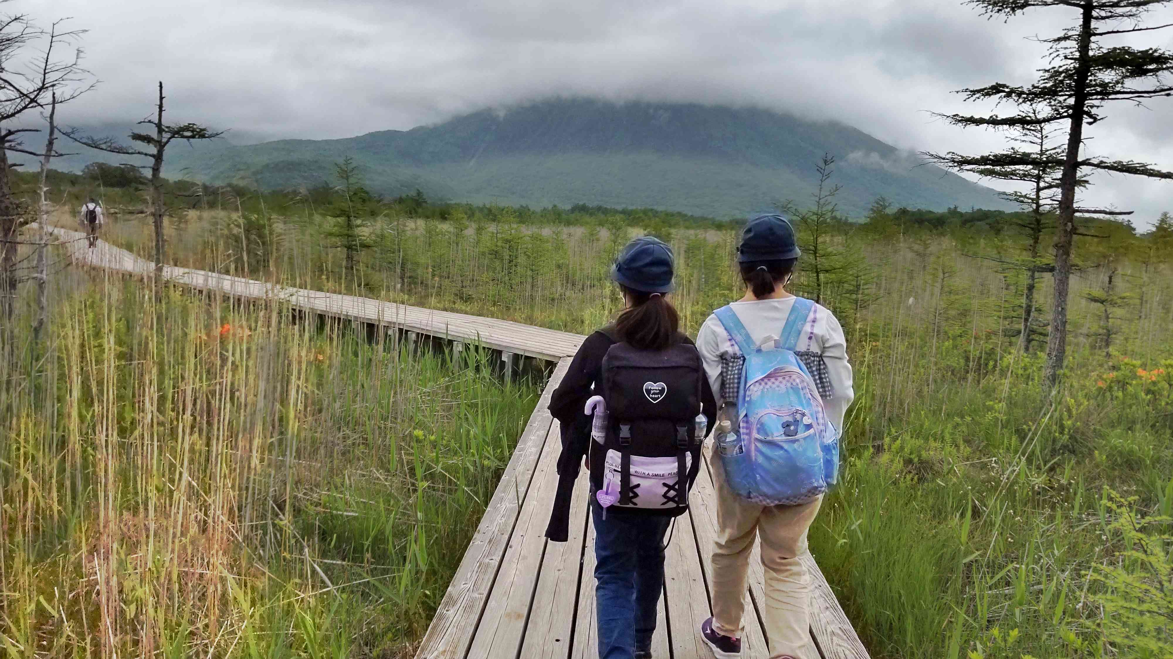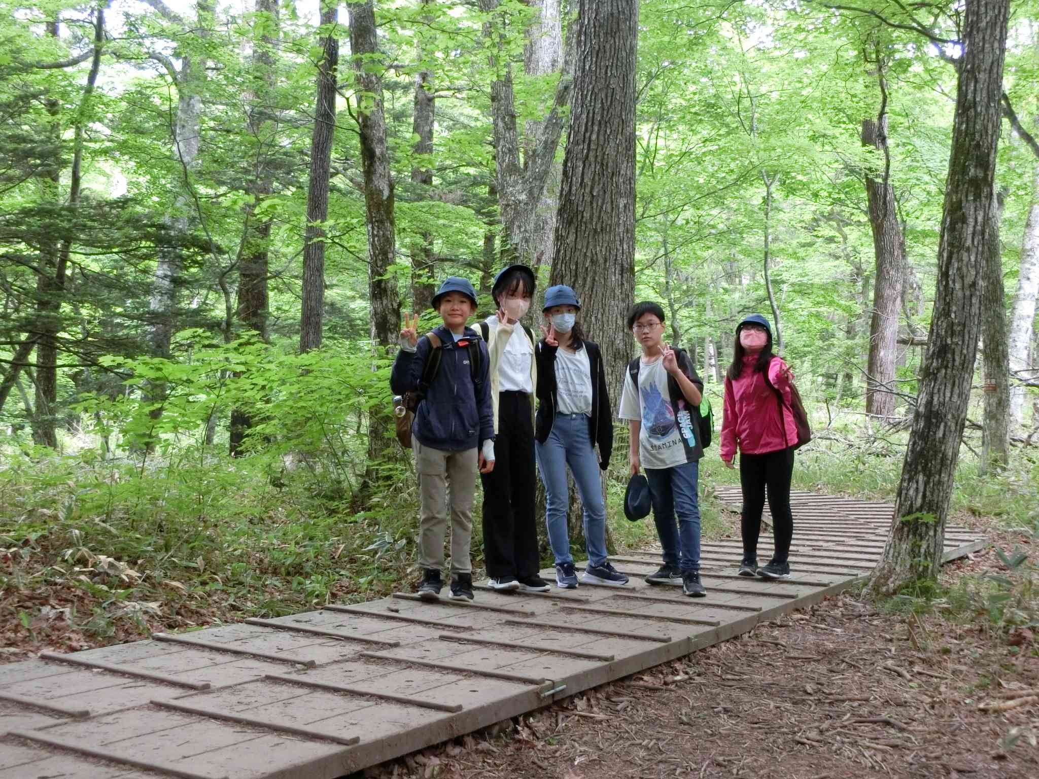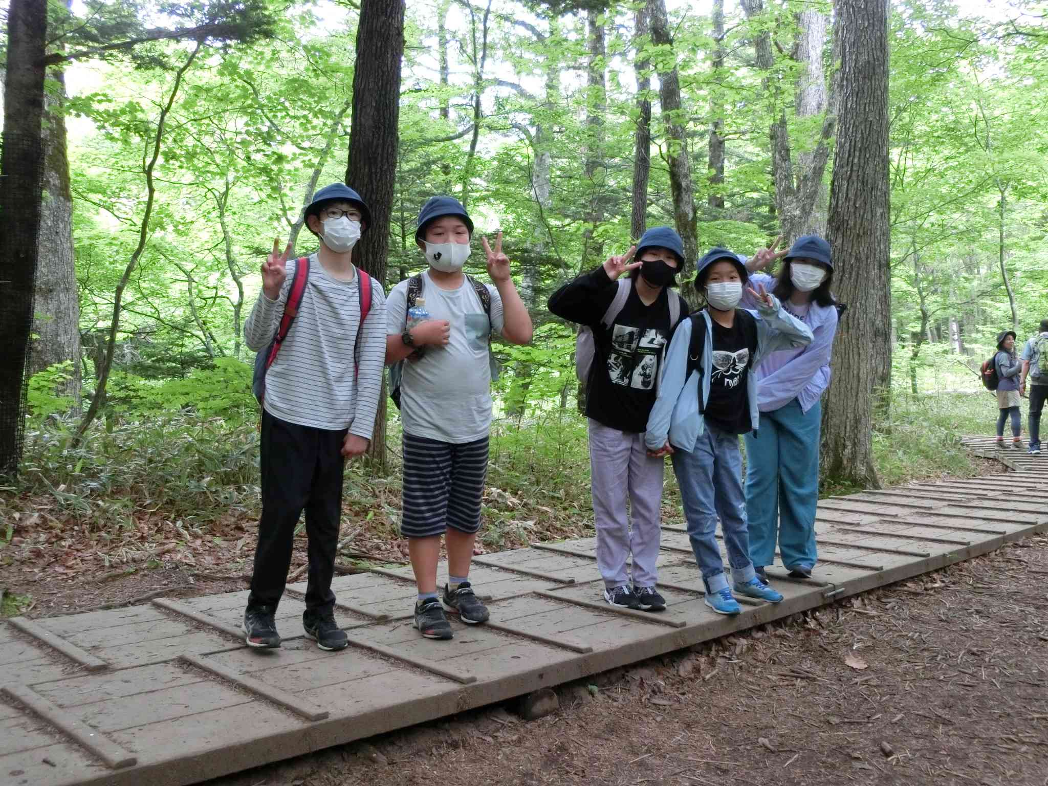 湯滝で班ごとに写真を撮り、戦場ヶ原を班ごとにハイキングに出発しました。 歩き慣れていない道に苦戦しながらも、光徳牧場までの5キロ程を頑張って歩きました。 男体山もきれいに見えました。(山頂は霧でしたが)