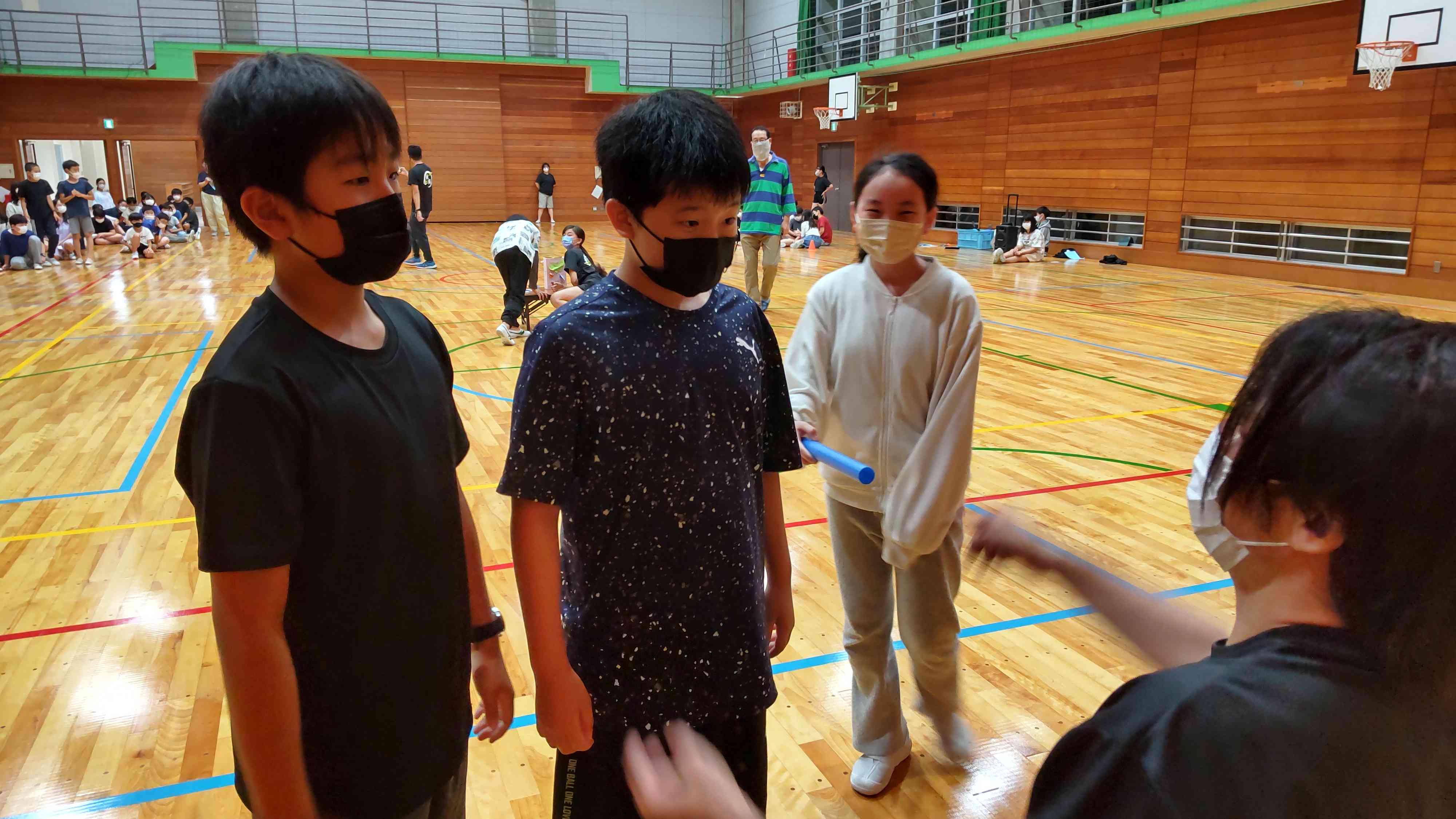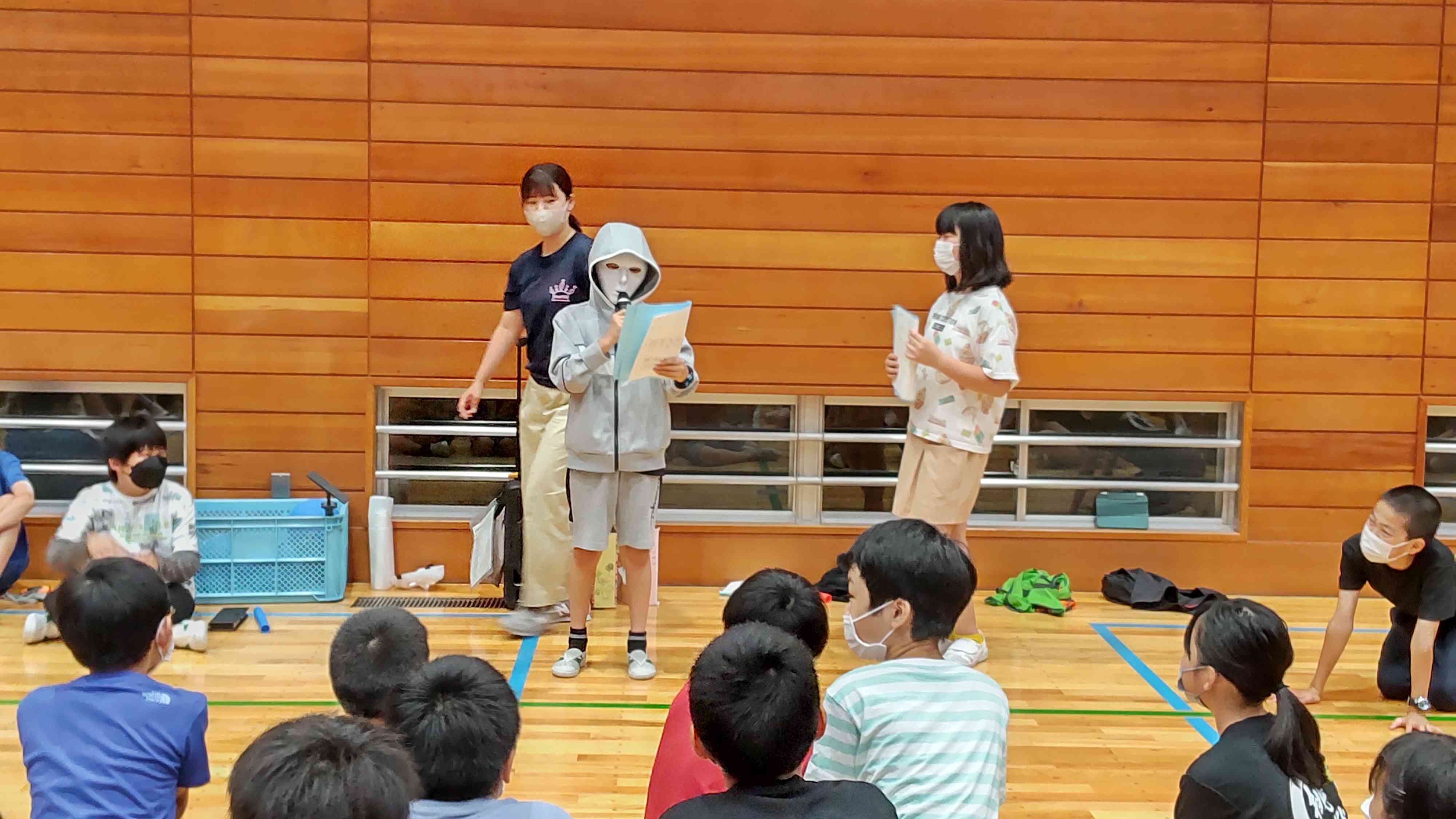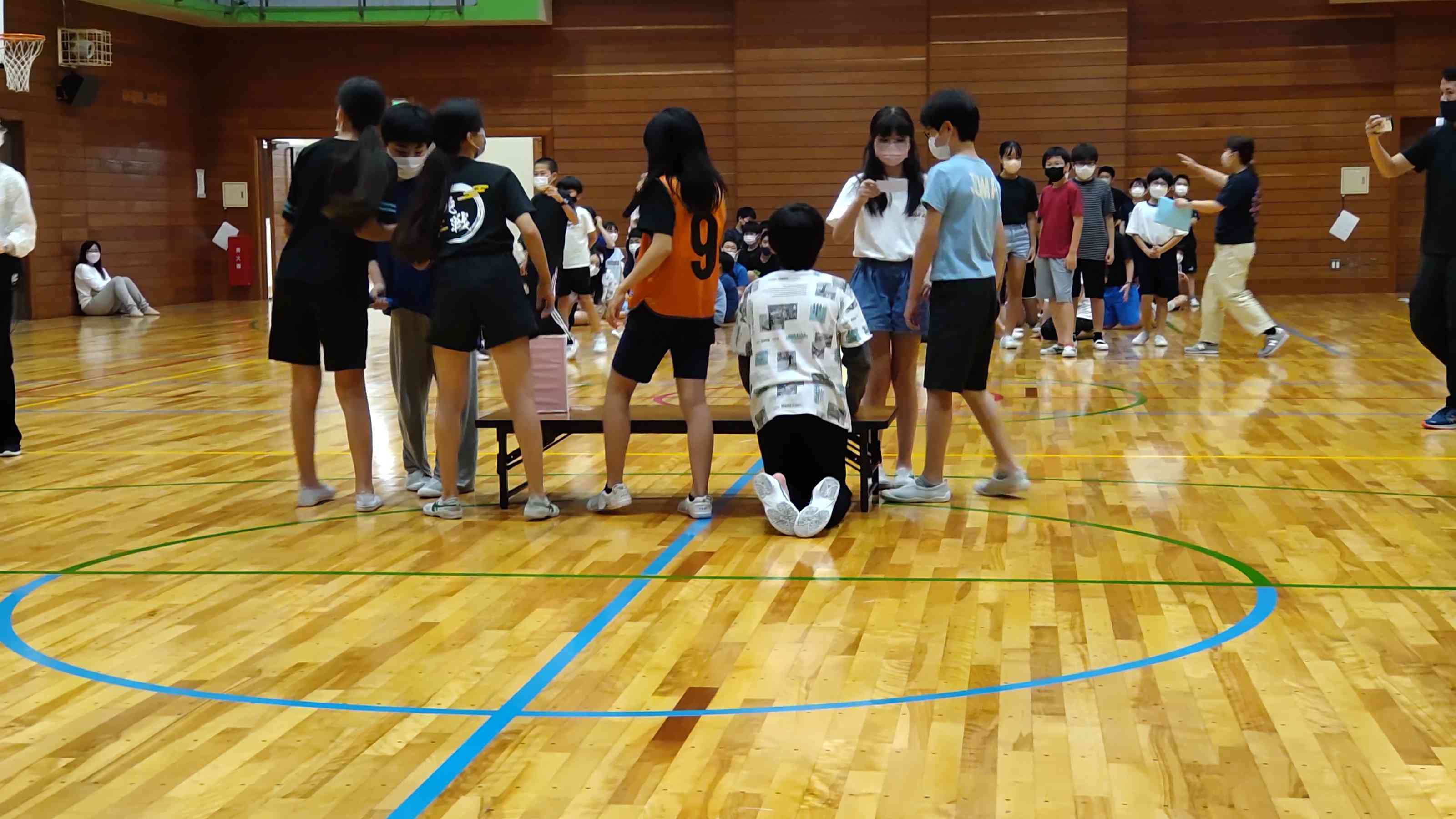 体育館でレクを行いました。 1つ目は「仲間がり」でした。 掛け声で盛り上げ、お題に合わせて仲間を見付ます。 お題は、「誕生月が同じ」や「好きな色」、「ランドセルの色が同じ」などありました。 6年間一緒に過ごした仲間なので、友達の誕生月がわかっていて、すぎに集まっている様子が見られました。 2つ目は「借り物ミッション競走」でした。 2人1組でお題が書いてある紙を引き、専科の先生がジャッジをしてお題をクリアし、次の組にバトンを渡します。 お題の中には「校長先生とダンス」や「マスクが黒い人を2人」、「氏名が5文字の人を3人」、「ものまねが得意な人を2人」などありました。 みんなで協力しながら、お題をクリアしている様子が見られました。 最後は「てんかドッジ」をしました。 ボールを持った人は、5歩までしか歩くことができません。 そして、近くの人を狙って投げ、ボールが当たった人はコートの外に出ます。 しかし、自分にボールを当てた人がボールに当たったら、復活ができます。 白熱したドッジを繰り広げていました。【添付ファイル】