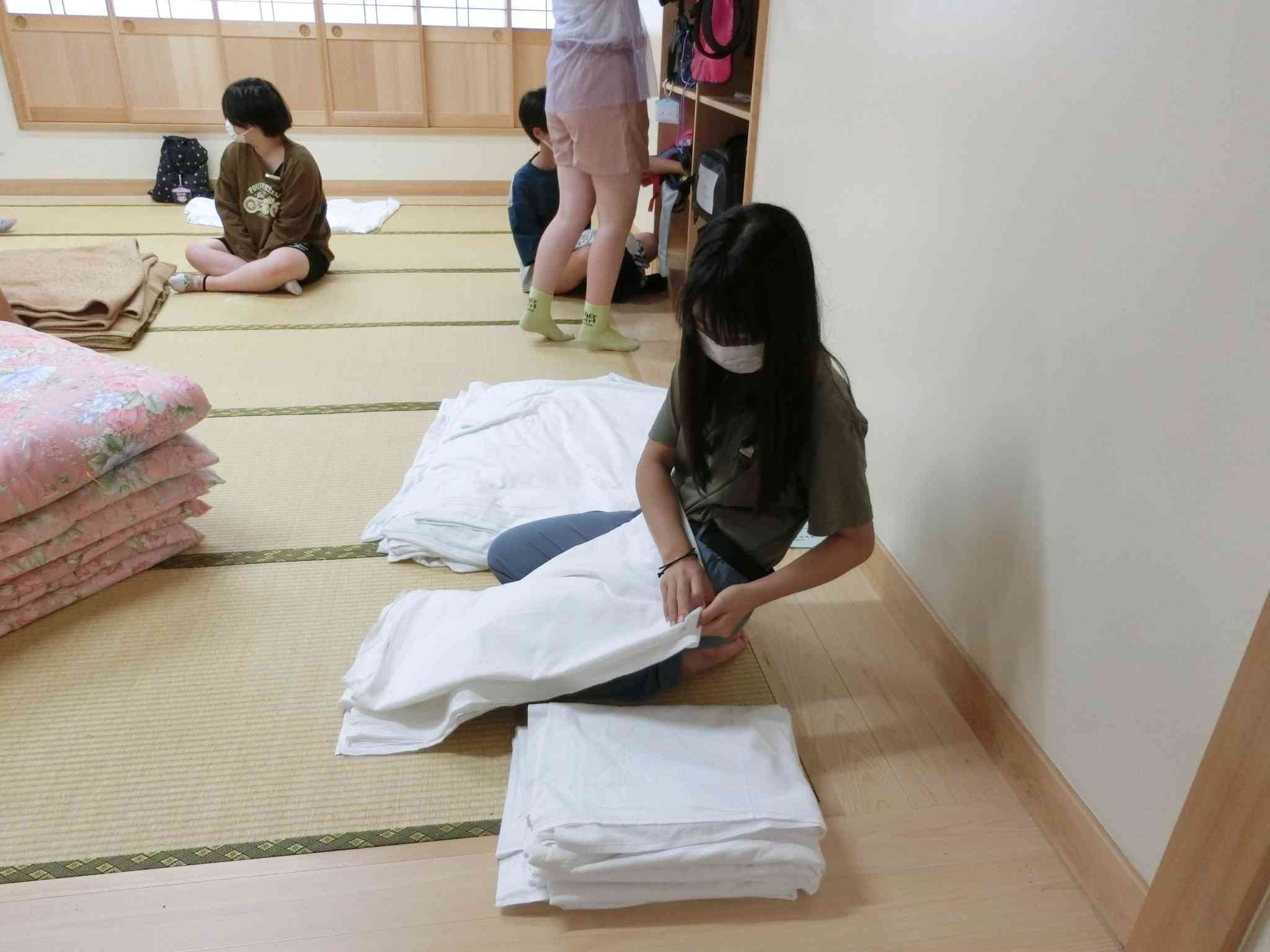 3日目も元気よく始まりました。 昨日の疲れからか、ぐっすりと寝ていました。 3日目の朝は、帰るための荷物の整理、寝具の片付け、部屋の掃除などやることがたくさんあります。 限られた時間の中で、声を掛け合いながら、協力している様子が見られました。 また、朝食後は2泊3日を一緒に過ごした川南小学校と閉園式をし、これから東照宮に向かいます。