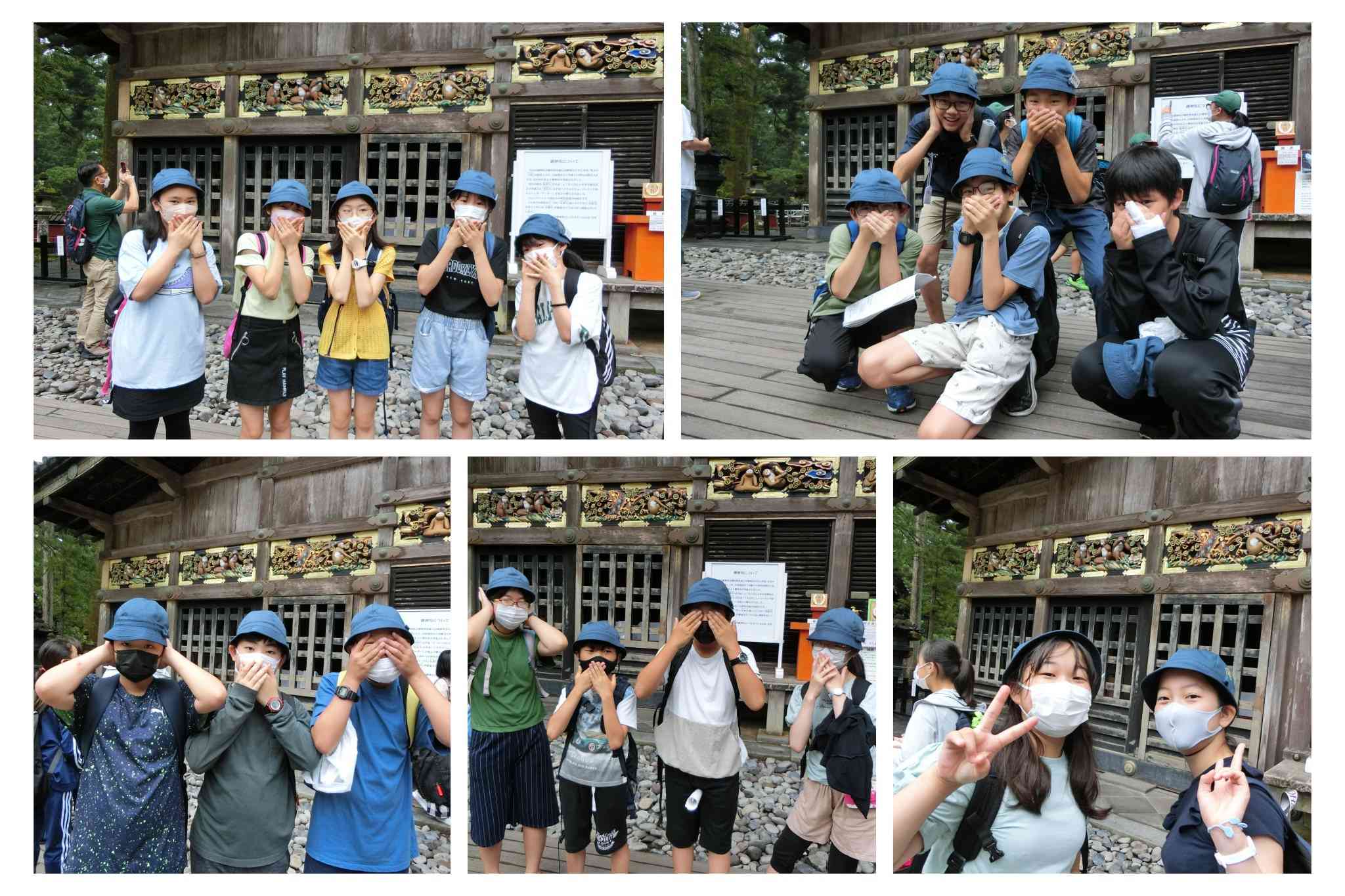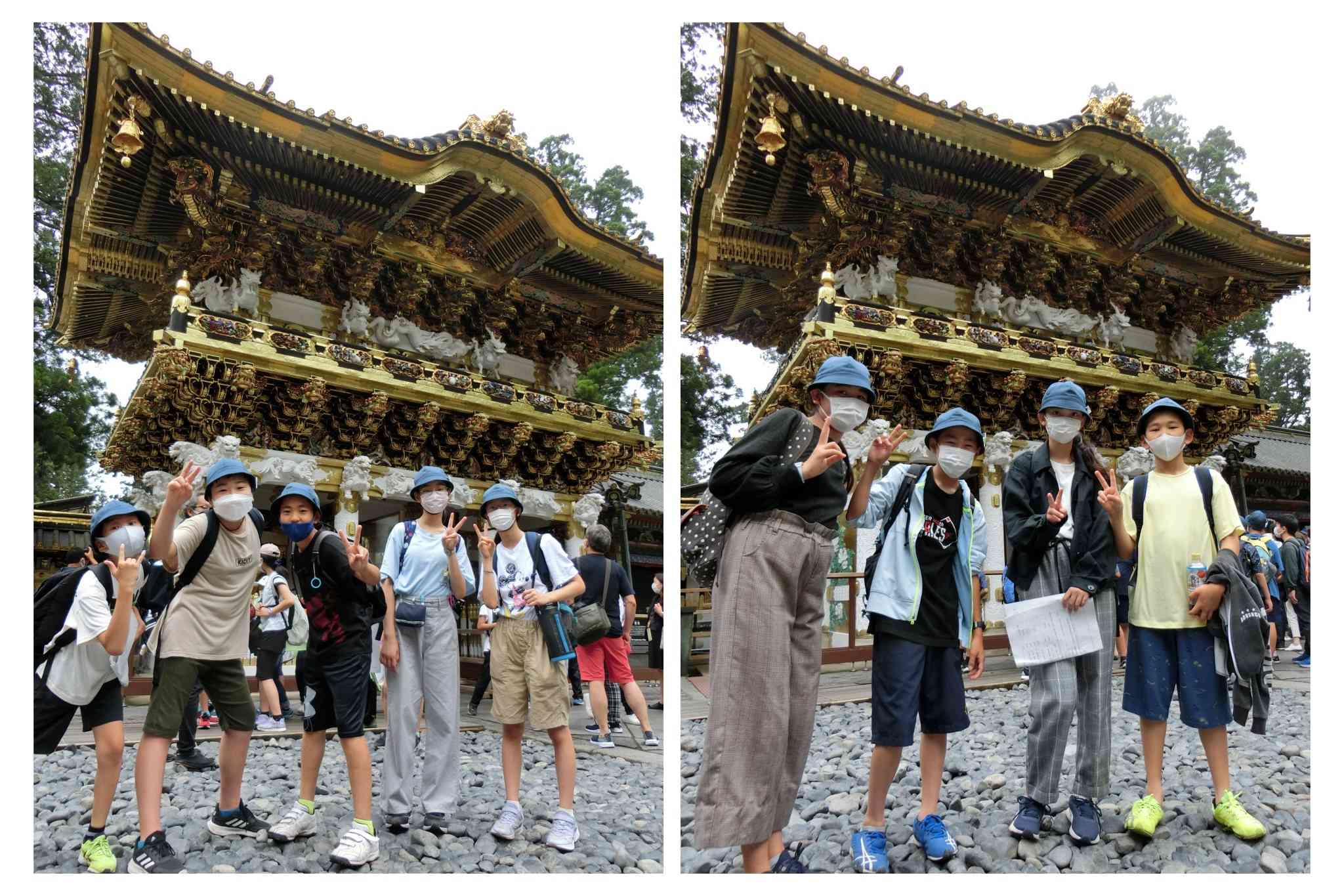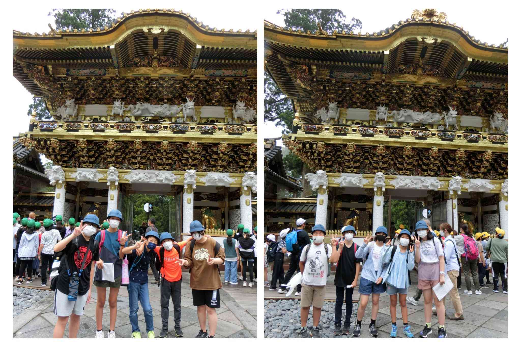 日光東照宮に行ってきました。 鳴龍に驚いたり、陽明門の逆柱を探したり、世界遺産をしっかりと見て回ることができました。 また、今日の東照宮は他の学校がたくさん来ていましたが、班ごとに時間を考えながら行動していました。 東照宮の後は、神橋を横目に歩いて竹内物産展に行って、お土産を買い、昼食です。