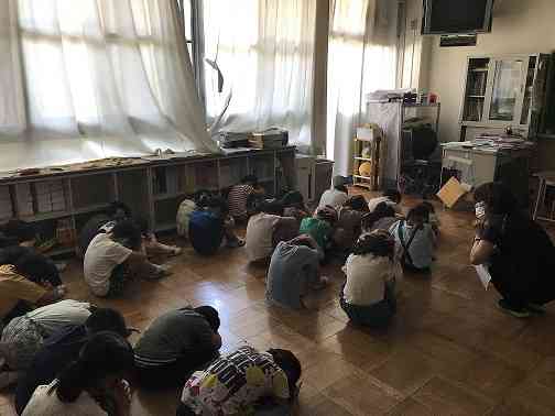7月の避難訓練を行いました。 内容は、不審者が校内へ入ってきた時の対応です。 教室のカーテンを閉め、机椅子をドアに寄せ、子どもたちはベランダから避難できるよう寄り、静かに小さくなりました。 どのクラスも、しんと静まっていました。 このあと校庭への避難を行う予定でしたが、熱中症対策のため、教室で校長先生の話を聞きました。 再来週には警察署の方を呼び、教職員の不審者対応訓練を行います。