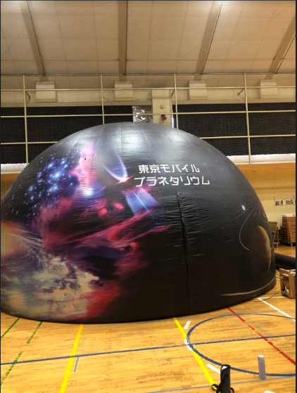 7月6日(水)にプラネタリウム出前授業がありました。体育館に設置された直径7mのドームの中でプロの解説員の方によるお話を聞きました。富士山の山頂で見える星座が映し出されたときには「わー!」と歓声が上がりました。「オリオン座だ」「天の川も見えるよ」など目を輝かせて話を聞いていました。最後は解説員の方に質疑応答して充実した星の学習となりました。
