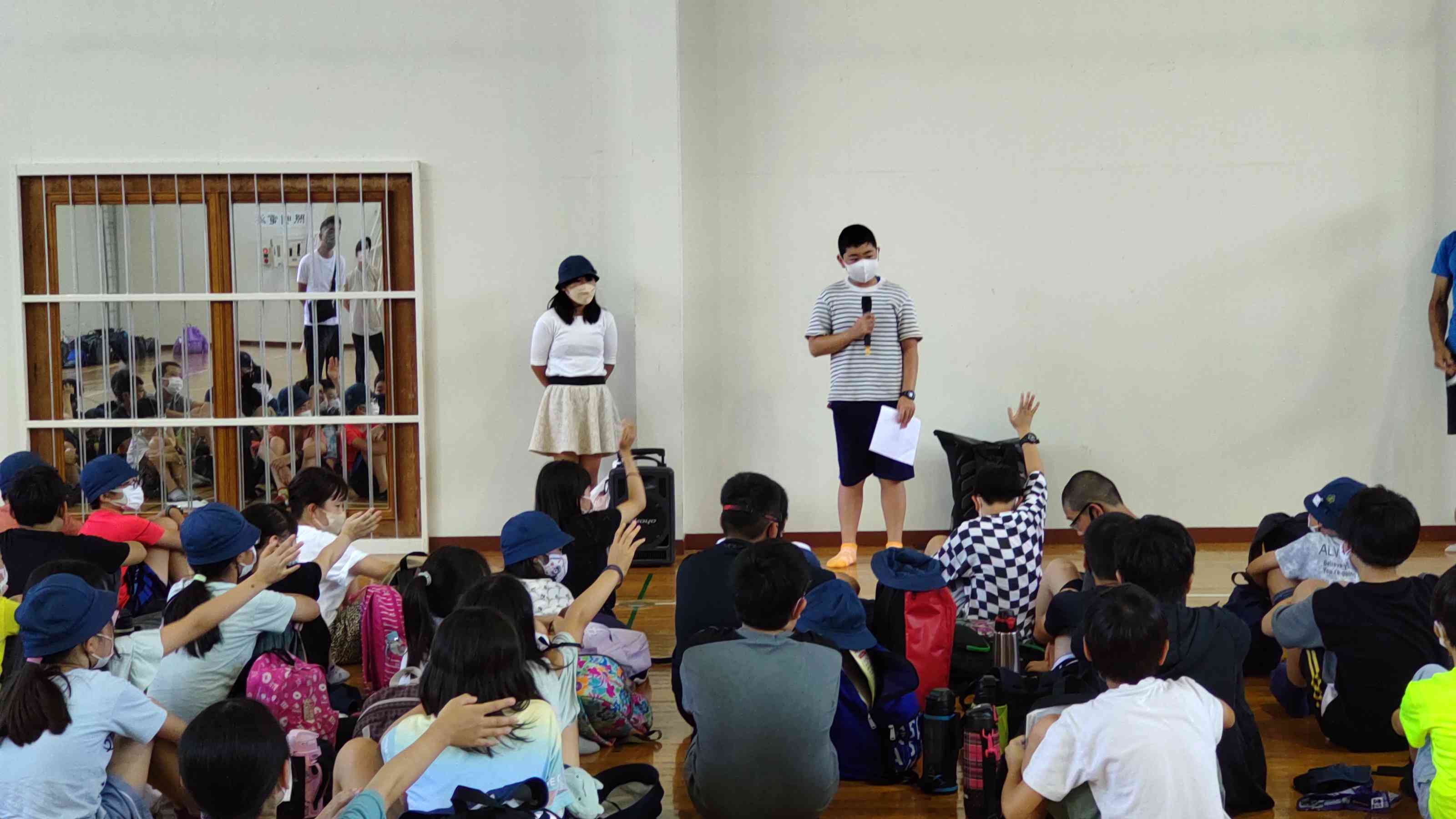 無事に北原館に着き、開校式をしました。 その後は、お昼を食べ、海までの道を確認しました。 この後は、待ちに待った遊泳です。