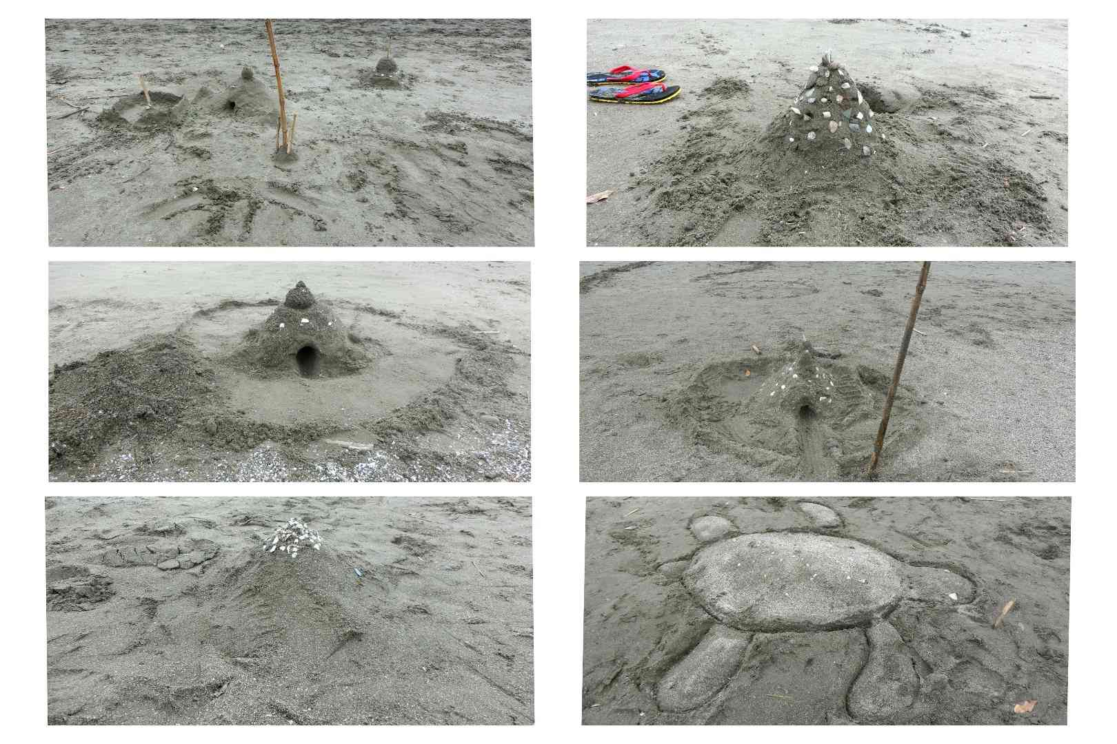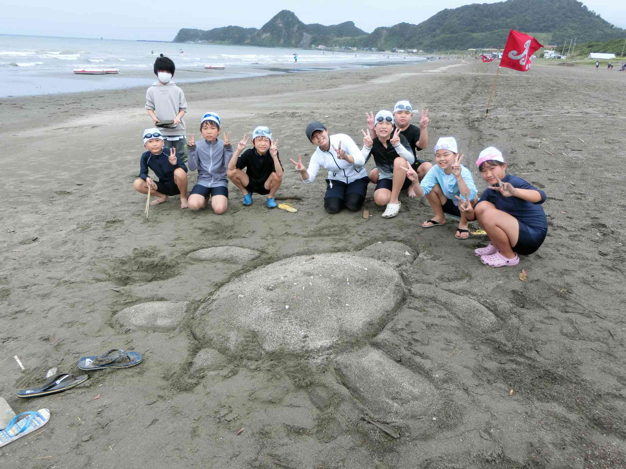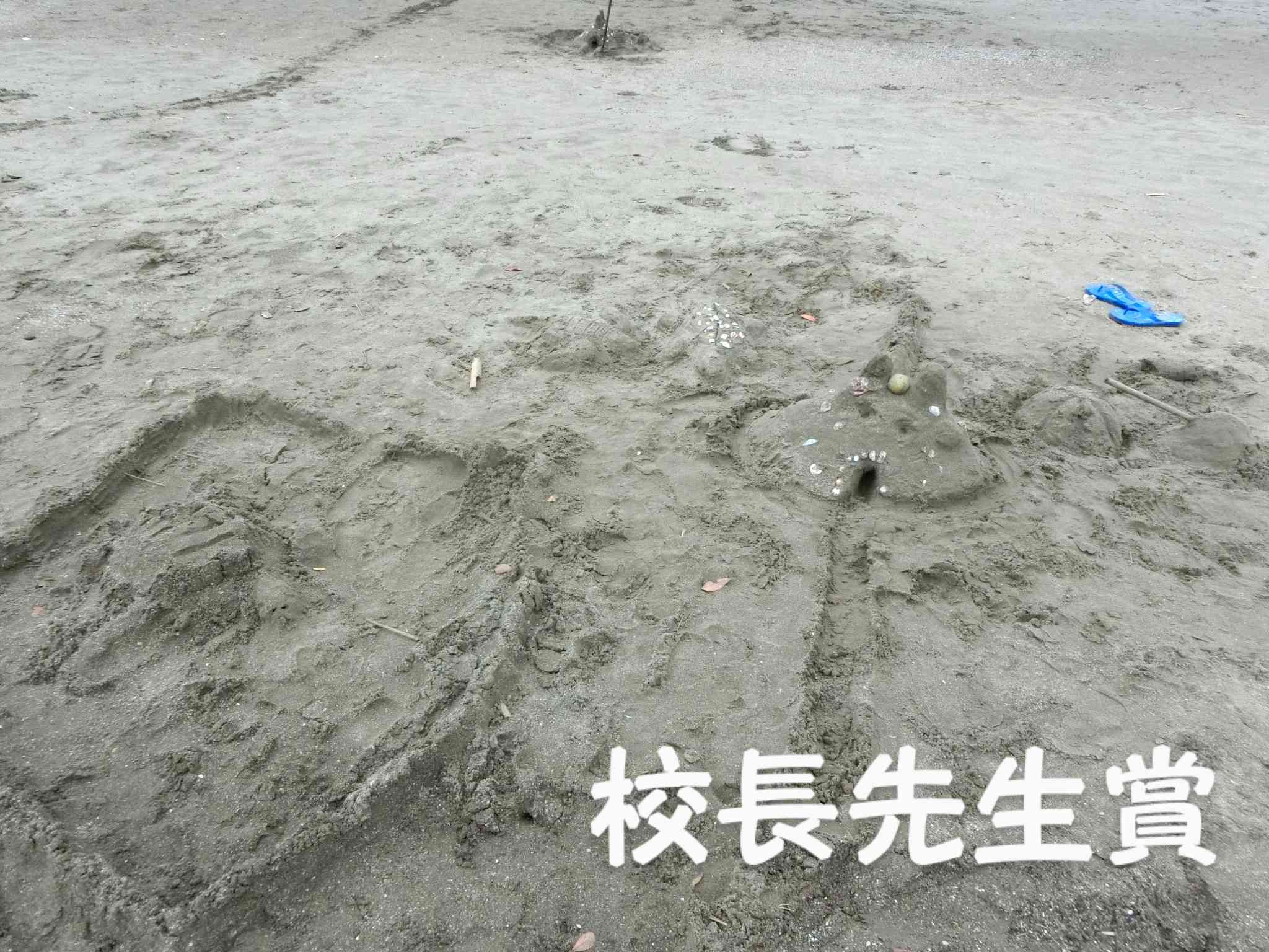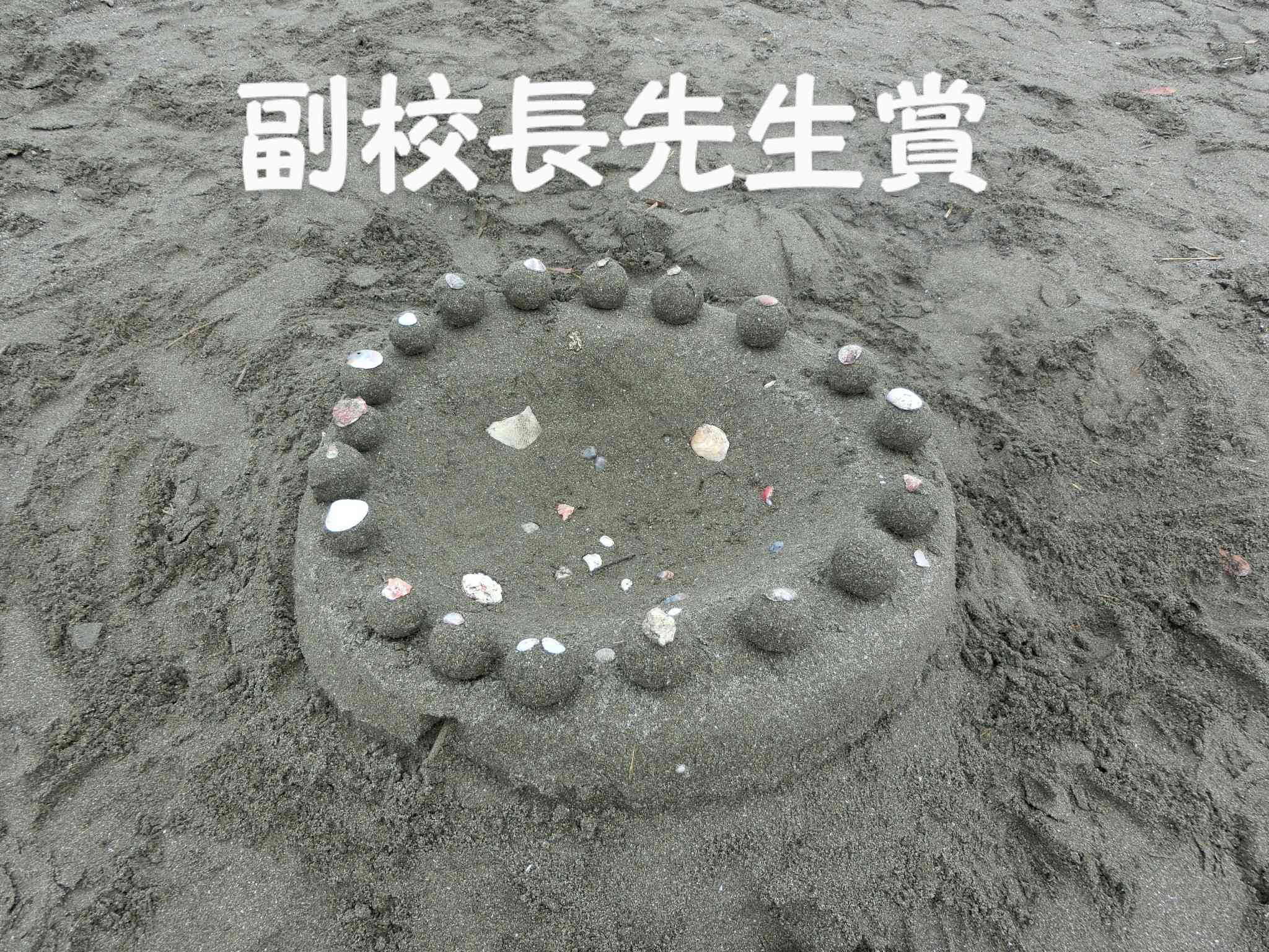 水泳班で、砂の芸術大会をしました。 班ごとにテーマを決め、「映える」ように力を合わせて作りました。 固めるために少し湿った砂を集めてくる子や土台を作る子、飾りの貝殻や棒を集める子、白いサラサラな砂を集めてくる子など自分たちで考えながら、短い時間でどの班も素晴らしい砂の芸術を完成させました。 そして、最後には校長先生賞、副校長先生賞、図工専科賞の3つが決まりました。