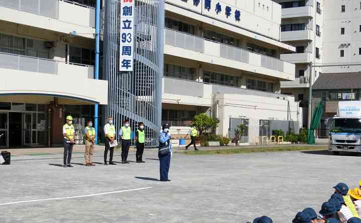 9月28日(水)に東京都トラック協会の方にお越しいただき「トラック安全教室」を行いました。前半には城東警察の方も来てくださいました。 三砂小の周りはトラックの往来が多いため、こどもたちが事故に遭わないための教室です。 大きな4トントラックが2台用意され、トラックの「死角」をこどもたちに協力してもらい確認したり、プロテクターを着けたスタントマンによる自転車の巻き込み事故の実演や横断歩道の渡り方の確認をしたりしました。 自分でもしっかり安全確認をして「自分の命は自分で守る!」を合言葉に、お話がありました。 こどもたちからは「迫力があって怖かった。自分も気をつけないと」や「自分は小さいから、ちゃんと(運転手に)見えるように手を上げて横断歩道を渡ろうと思った」という声がありました。 また、終了後には1年生がトラックに乗せてもらい、周囲が見えにくいことを体感していました。 来月は5年生が消火器訓練を行う予定です。こどもたちが安全に過ごせるよう、学校でも伝えていきます。【添付ファイル】