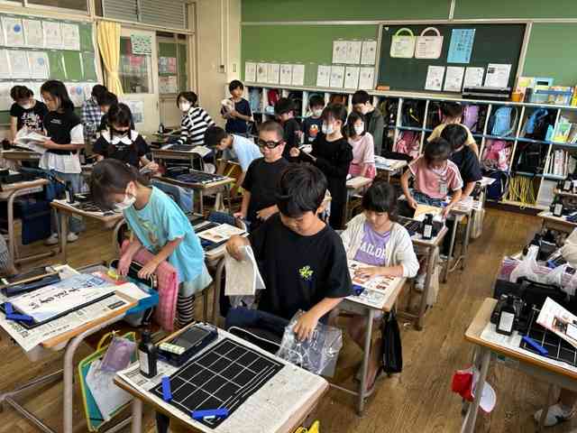 書写の授業で、初めての毛筆に挑戦しました。 子どもたちは、朝からワクワクしていました。 授業では、道具の名前、出し方、片付け方を習いました。 実際に筆を持ち、線を書いてみました。 初めての感覚に楽しみながら学習することができました。次もがんばるぞ!