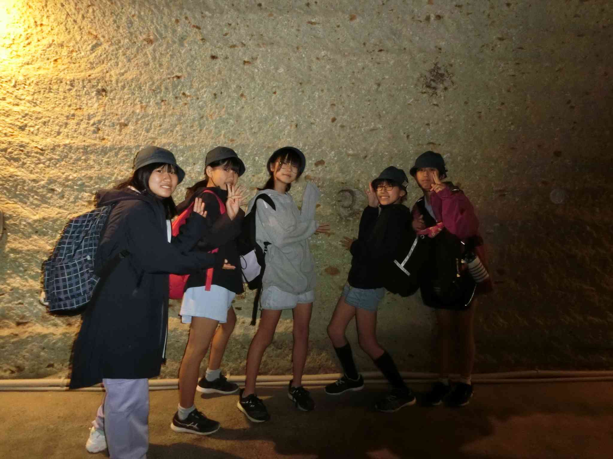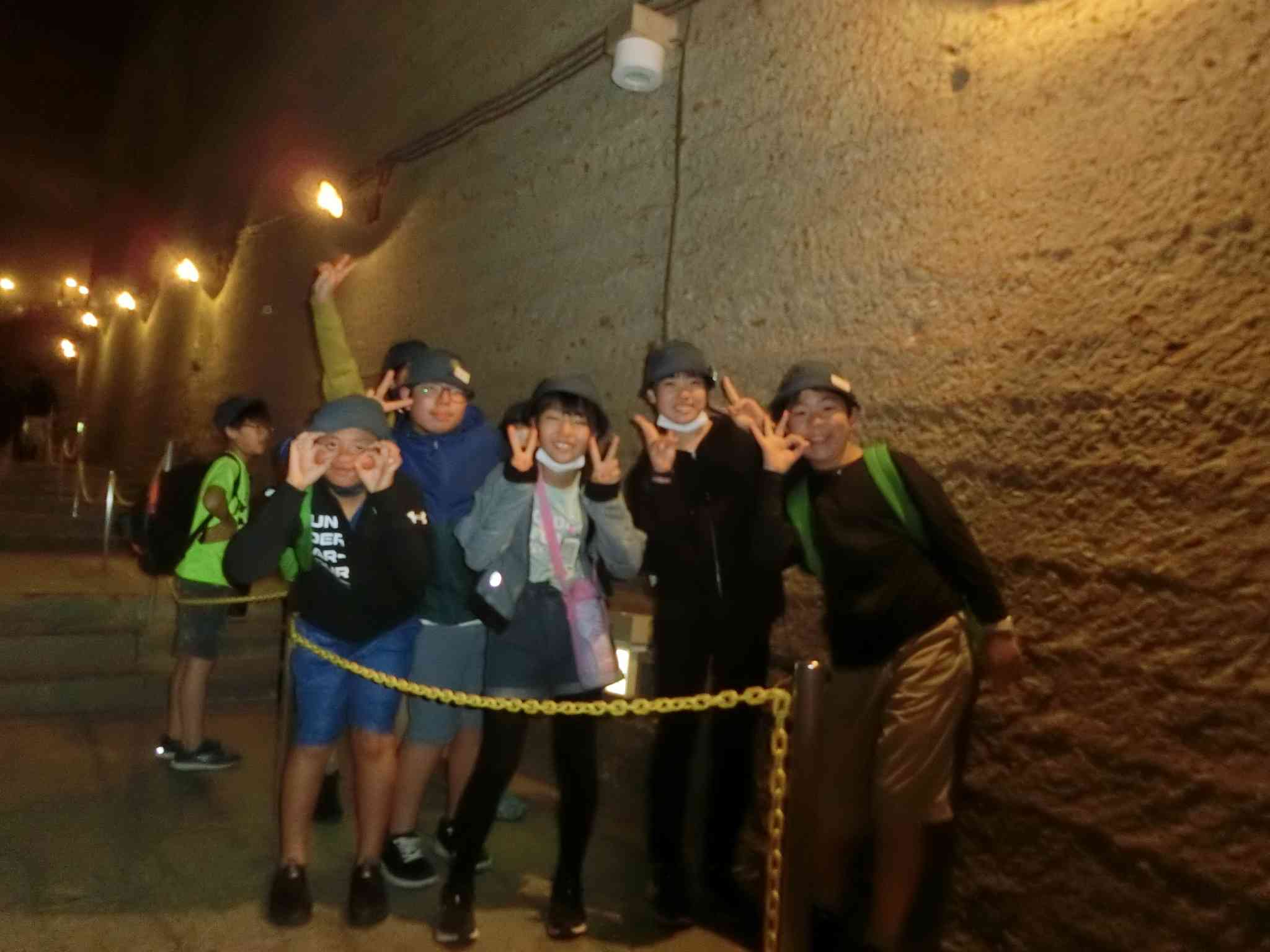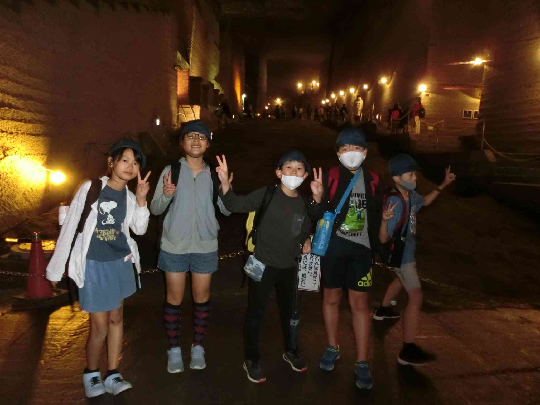 雨のため、だいや川公園のアスレチックではなく、大谷資料館に行きました。 階段を降りるごとにヒンヤリとした空気を感じ、石の凸凹した感触に触れることができました。 また、音楽の時間に練習してきた「小さな勇気」を合唱しました。 石に囲まれた空間のため、今までに味わったことのない響きの中、一人一人のびのびと歌っていました。 一般のお客様からも拍手をもらい、とても嬉しそうにしていました。 このあとは、東武ワールドスクエアに向かいます。【添付ファイル】
