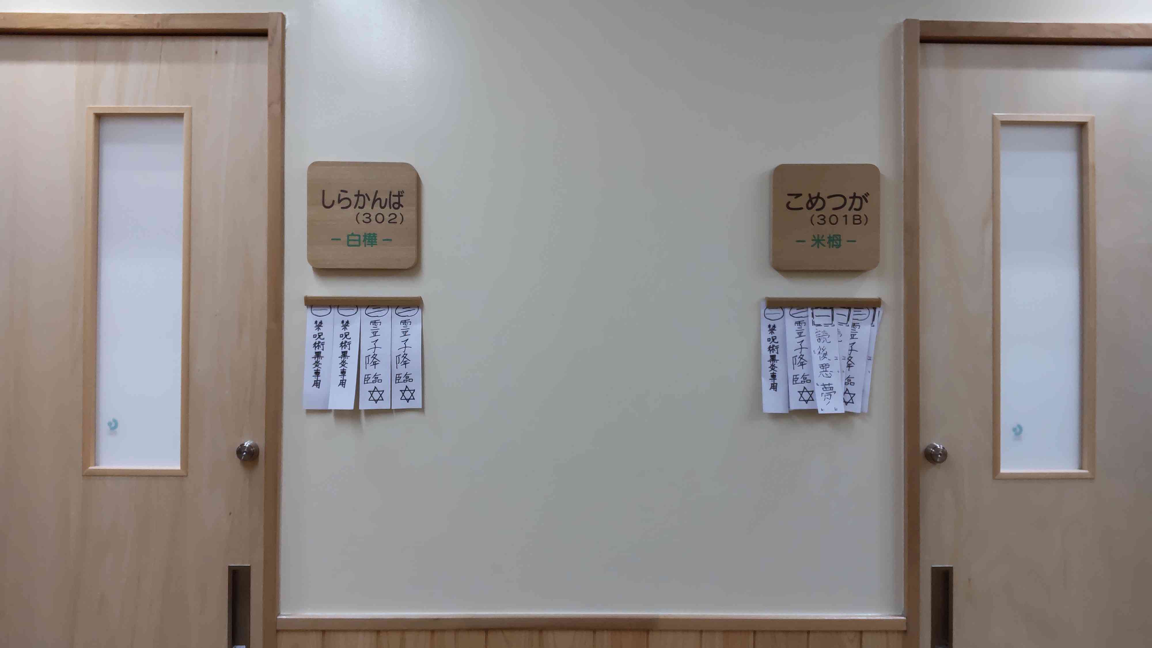 宿舎に着いてからは、一緒に2泊3日を過ごす川南小学校と開校式を体育館で行いました。 その後は、お風呂に入って、ジュースを飲んで、夜ご飯を食べました。 みんな、お腹が空いていたのかすぐに完食する子も多く、中にはカレーを4回もおかわりしている子もいました。 夜ご飯の後は、お待ちかねの肝試しです。 肝試し係はお面などをつけながら、驚かしていました。 キャーという悲鳴が聞こえてくることもありました! 終わった後は、肝試しで集めた御札をどの部屋も呪われないよう、お化けや幽霊が来ないよう飾りました。 空いた時間は、各部屋とても楽しそうに過ごしている様子が見られました。 友達との絆を深める2泊3日になってほしいと思います。【添付ファイル】