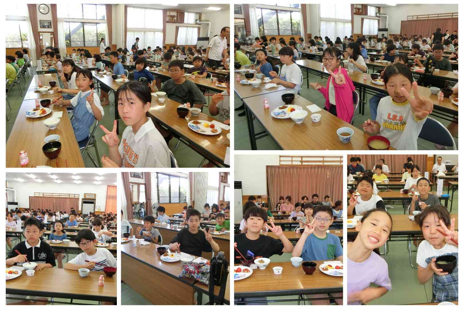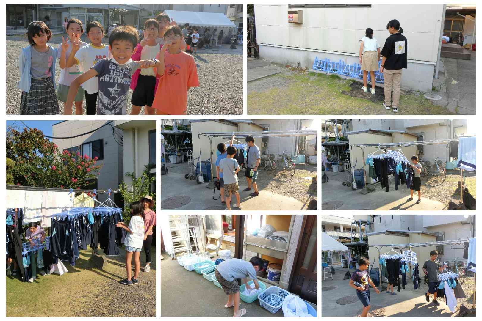朝会後(朝ごはん前)に、生活係が水着を取り込みました。 朝ごはんでは、「納豆美味しい〜」や「ふりかけも納豆も使わずにご飯1杯食べました」など、元気モリモリ、美味しそうに食べていました。 また、友達と朝ごはんを食べる貴重な機会を楽しんでいる様子も見られました。 いよいよこの後は、遊泳です。