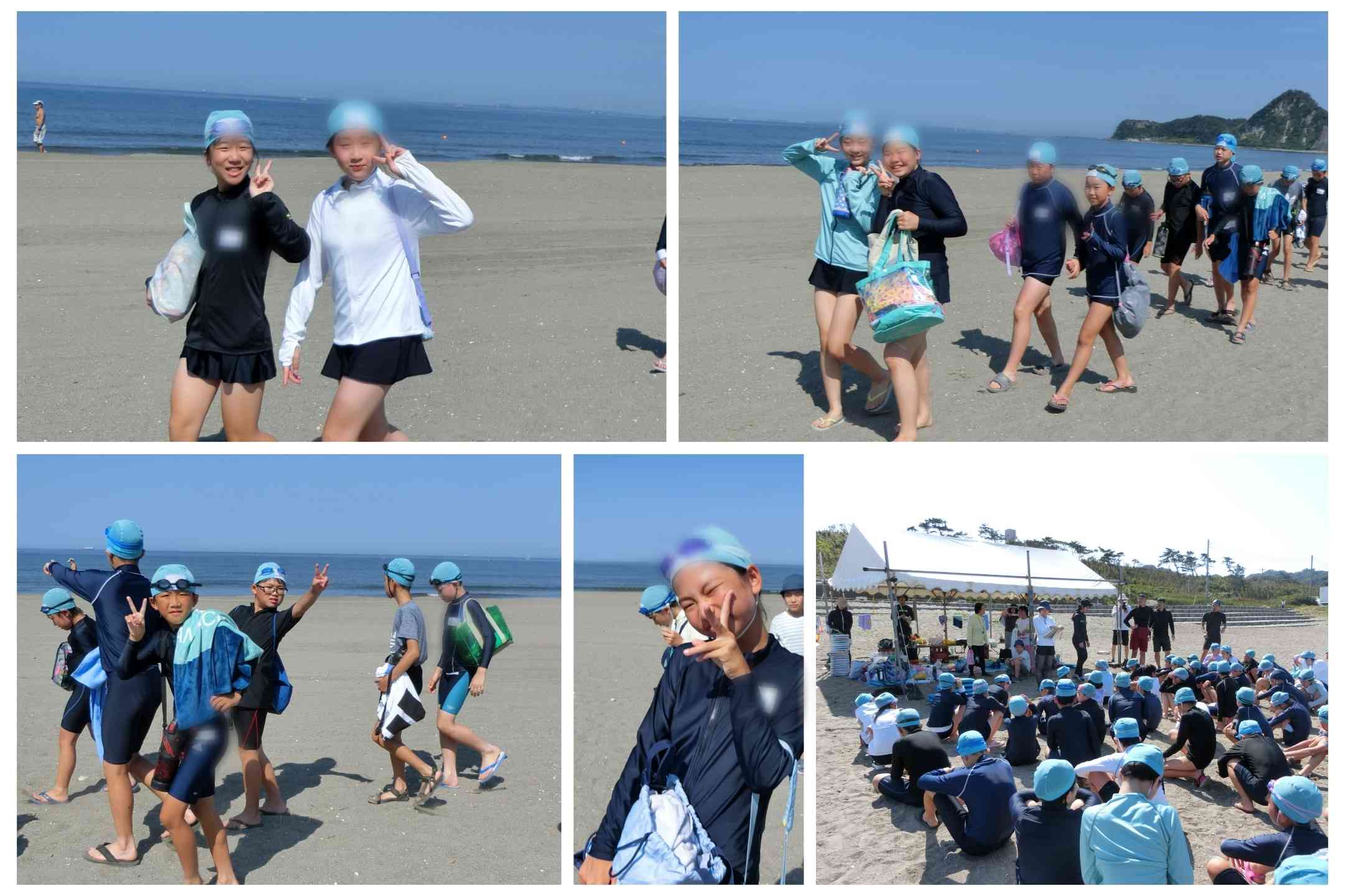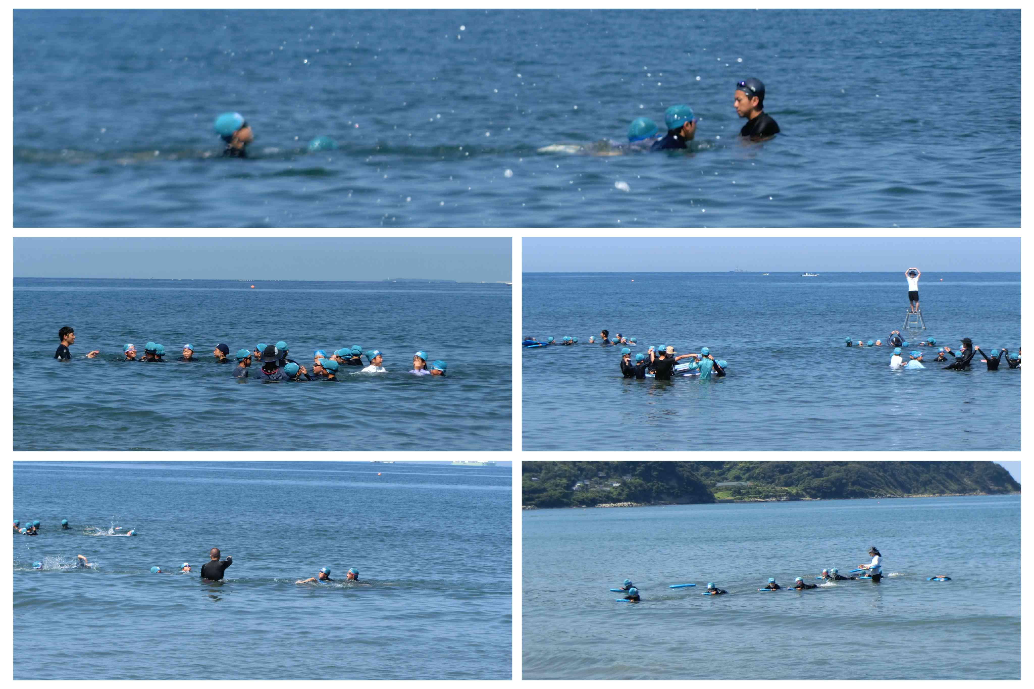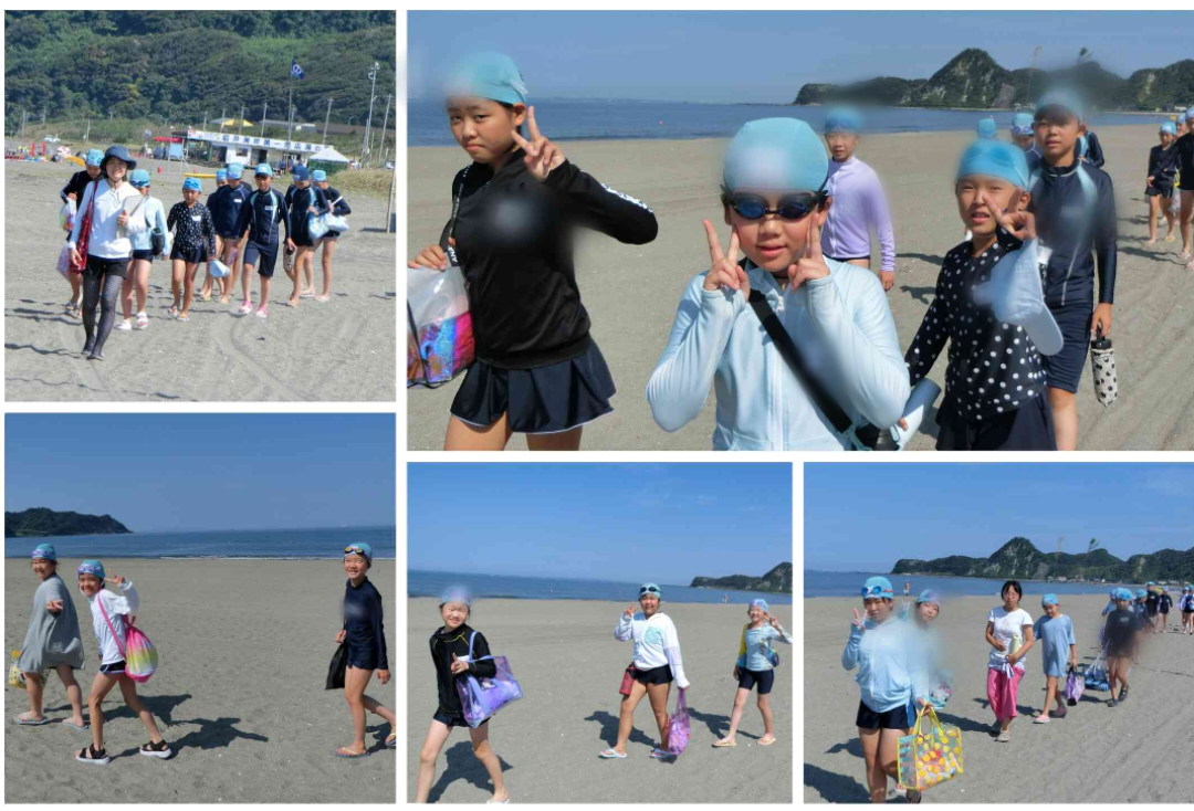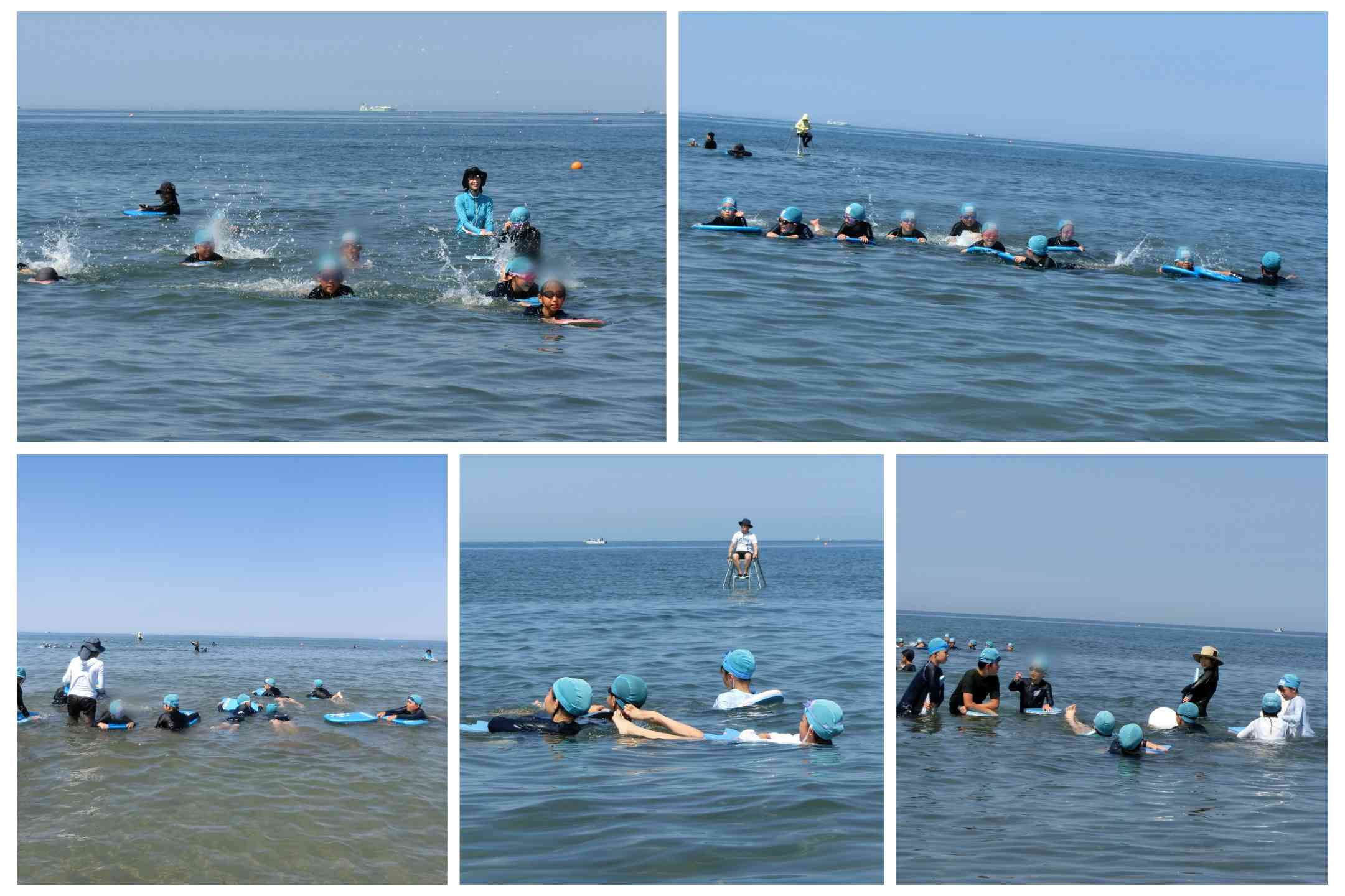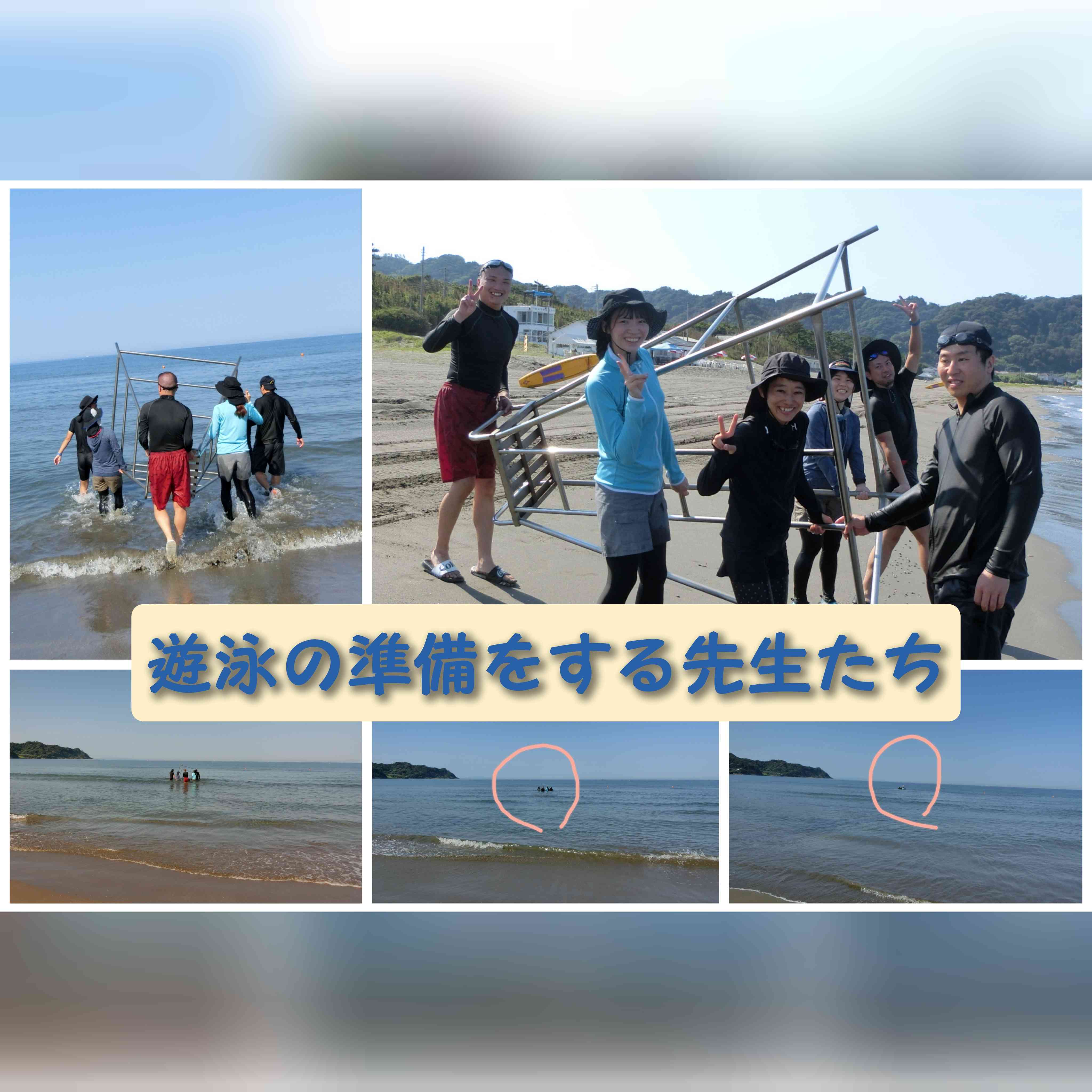 気温30度、水温24度の中、午前の遊泳を行いました。 思ったよりも海水が冷たく、「冷た〜い」と言いながらも笑顔でした。 ボディボードやビート板で波乗りをしたり、午後の遠泳に向けて足をつかないように泳いだり、水泳班ごとに遊泳を行いました。 実は、遊泳を安全に楽しくできるように、こどもたちが海に来る前に先生たちで監視台を運んだり、ブイを運んだりしています。