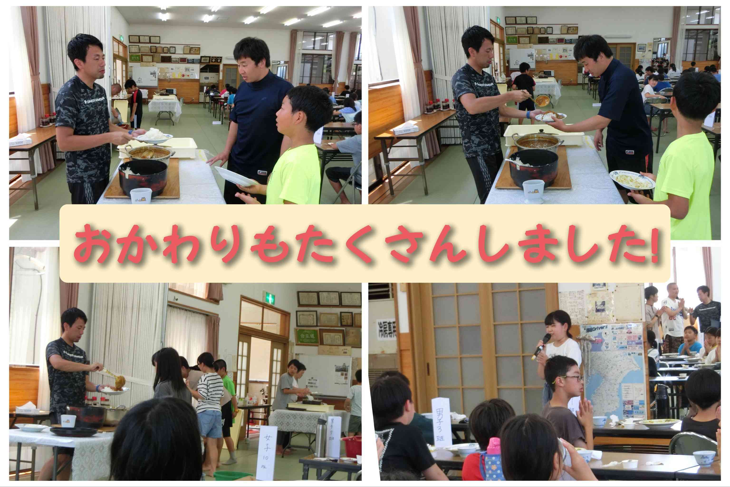 たっぷり遊泳したあとは、お昼ごはんのカレーライスを食べました。 こどもたちは、おかわりをしながら、朝ごはんに負けないくらい元気モリモリ食べていました! ※先生も大盛りでおかわりをしていました。