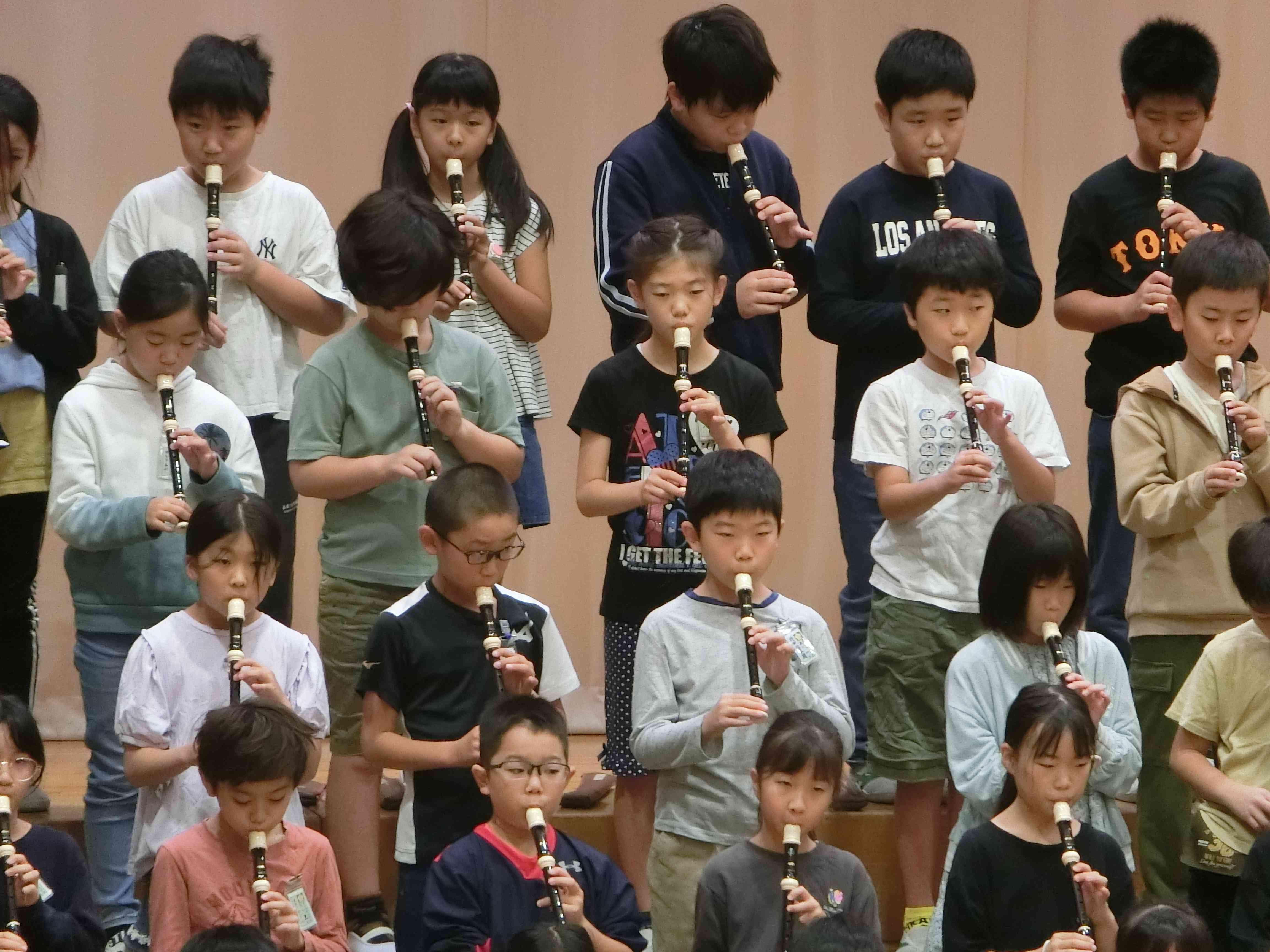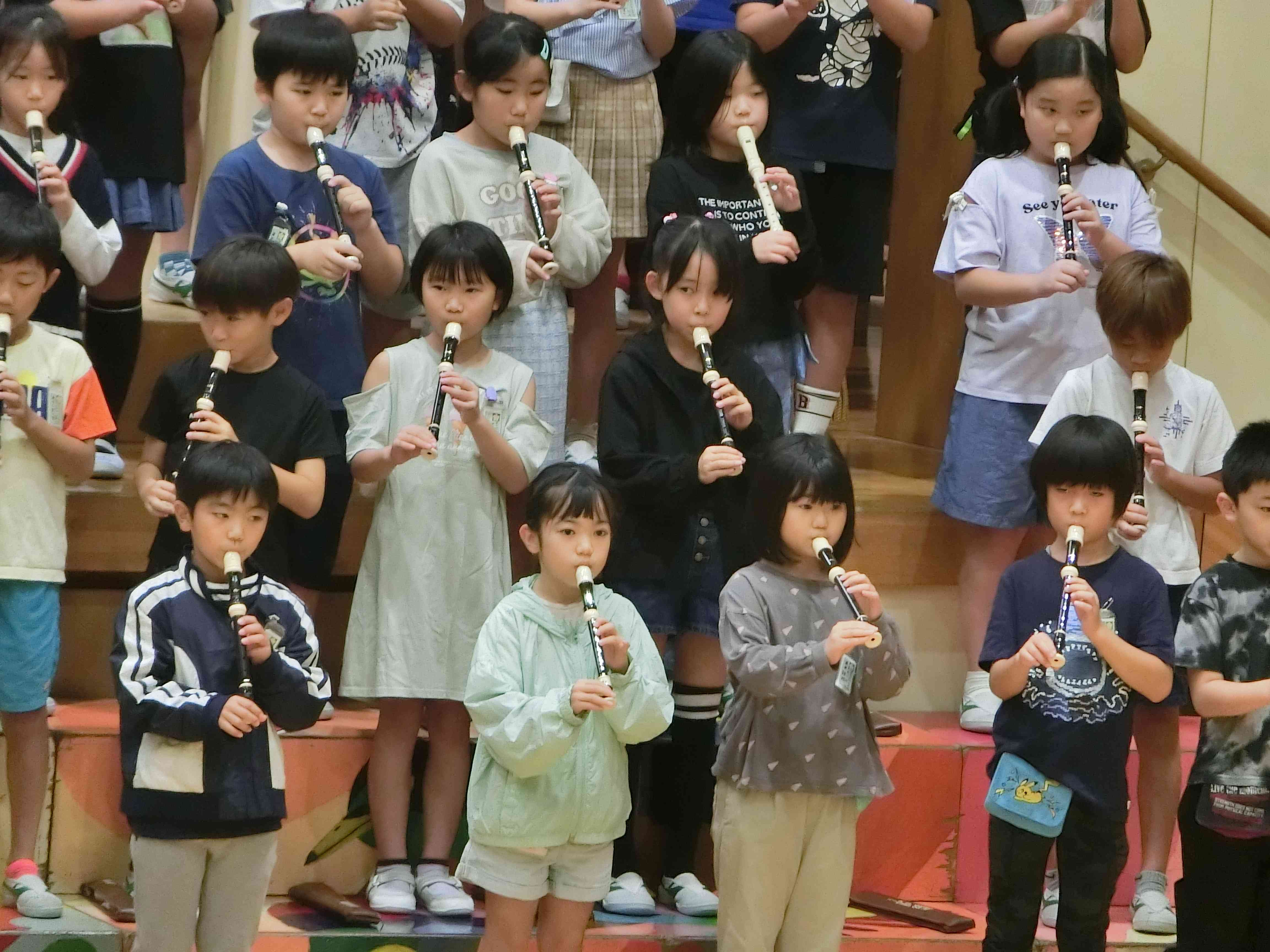 今月の音楽朝会は、3年生の発表でした。 リコーダーメドレーを演奏しました。 3年生になって、学習した成果を全校の前で披露することができました。 発表の音色も態度も素晴らしかったです。 3年生の成長が見られました。