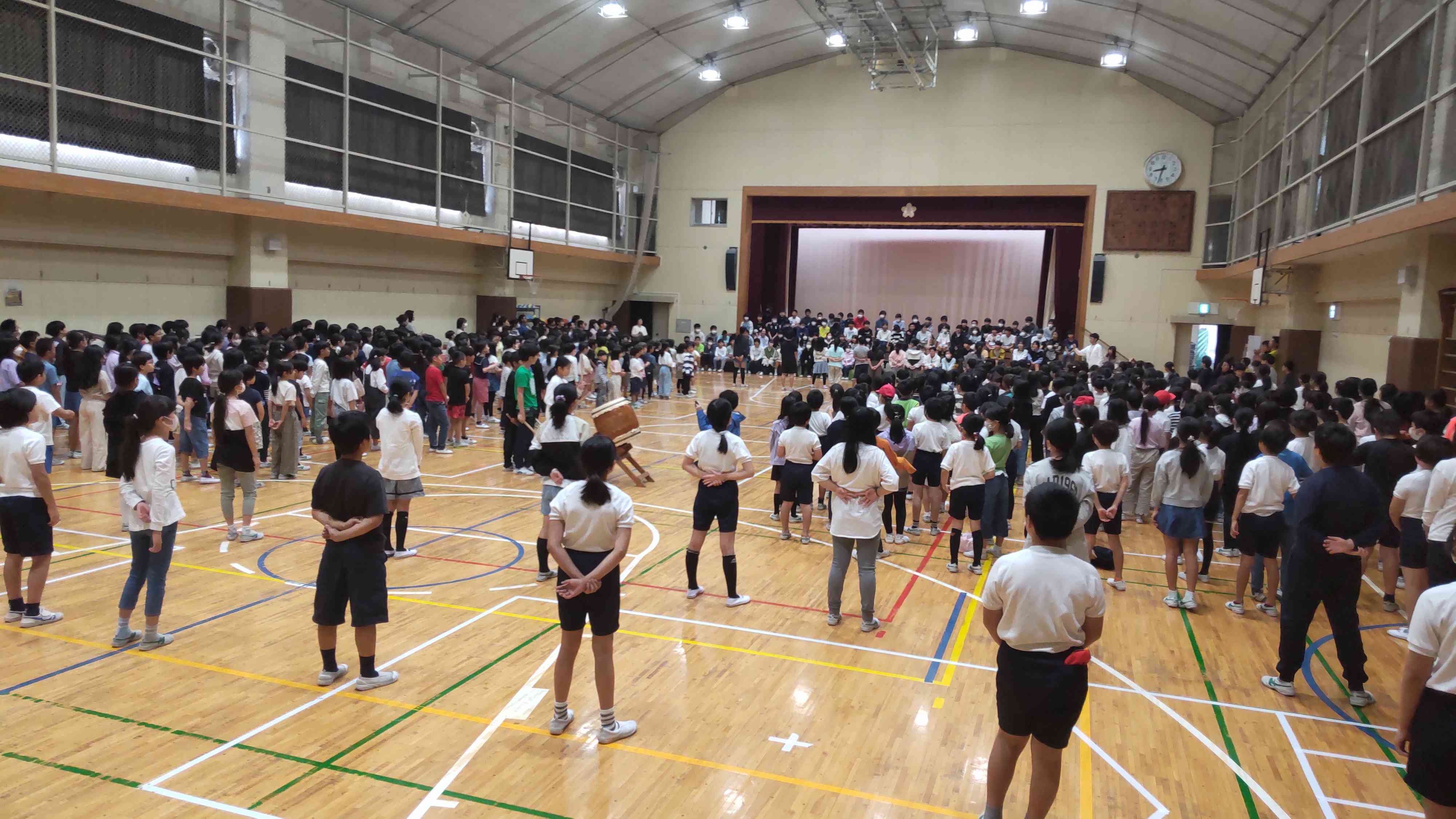 10月24日(火)の朝の時間に、明日行われる「6年 連合運動会の壮行会」を行いました。 各種目に出場する選手の紹介の後、その場で5年生にマイクを渡された6年生が一言で意気込みを話しました。 「練習してきたからこその思い!」そして、「サッと答えられる瞬発力!」と「さすが!6年生!」という姿を全校に見せてくれました。 その後は、全校で6年生に三砂コールでエールを送りました。 明日、6年生一人一人が今までの練習の成果を出し切り、自己の目標達成に向けて頑張ってきてほしいと思います!【添付ファイル】
