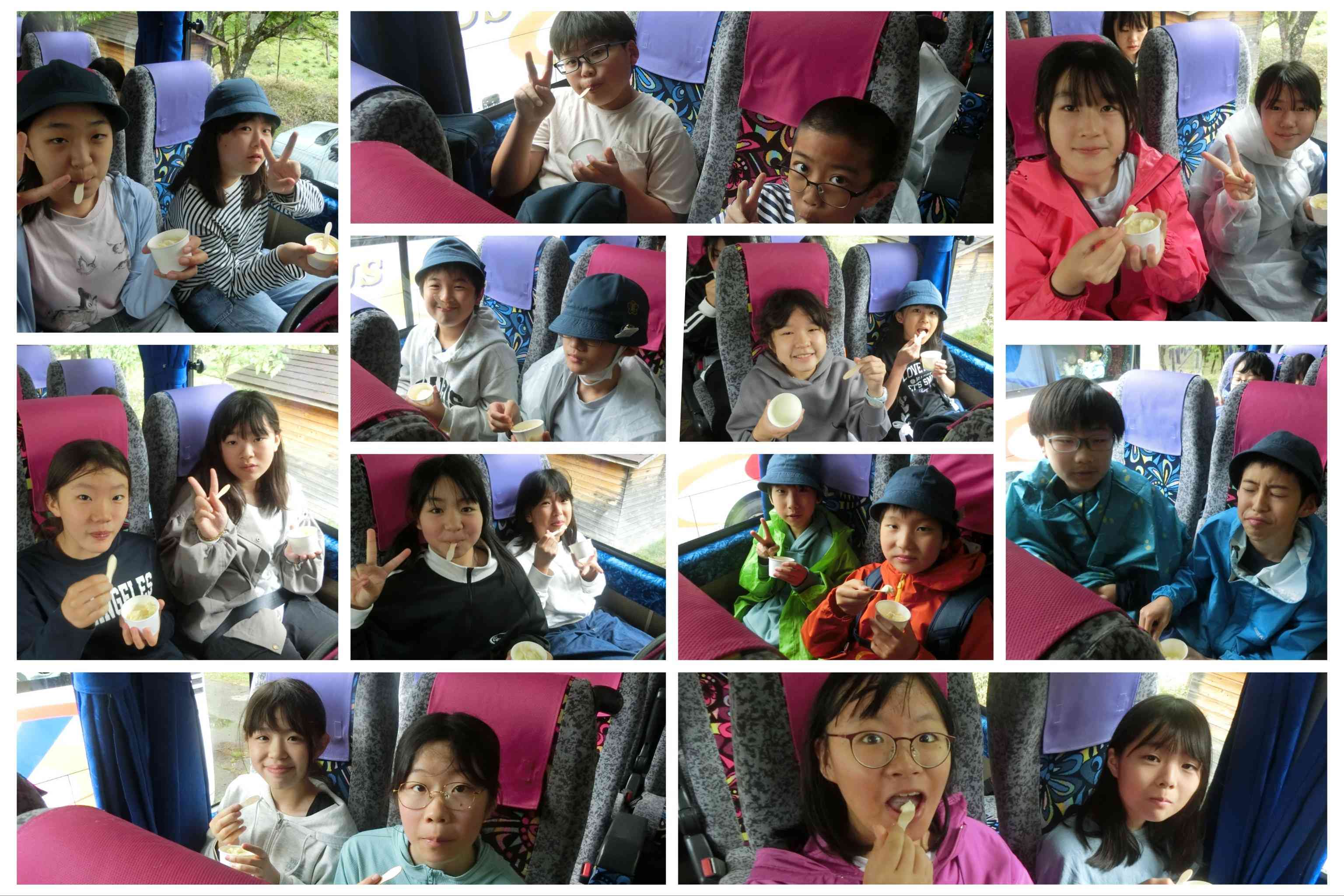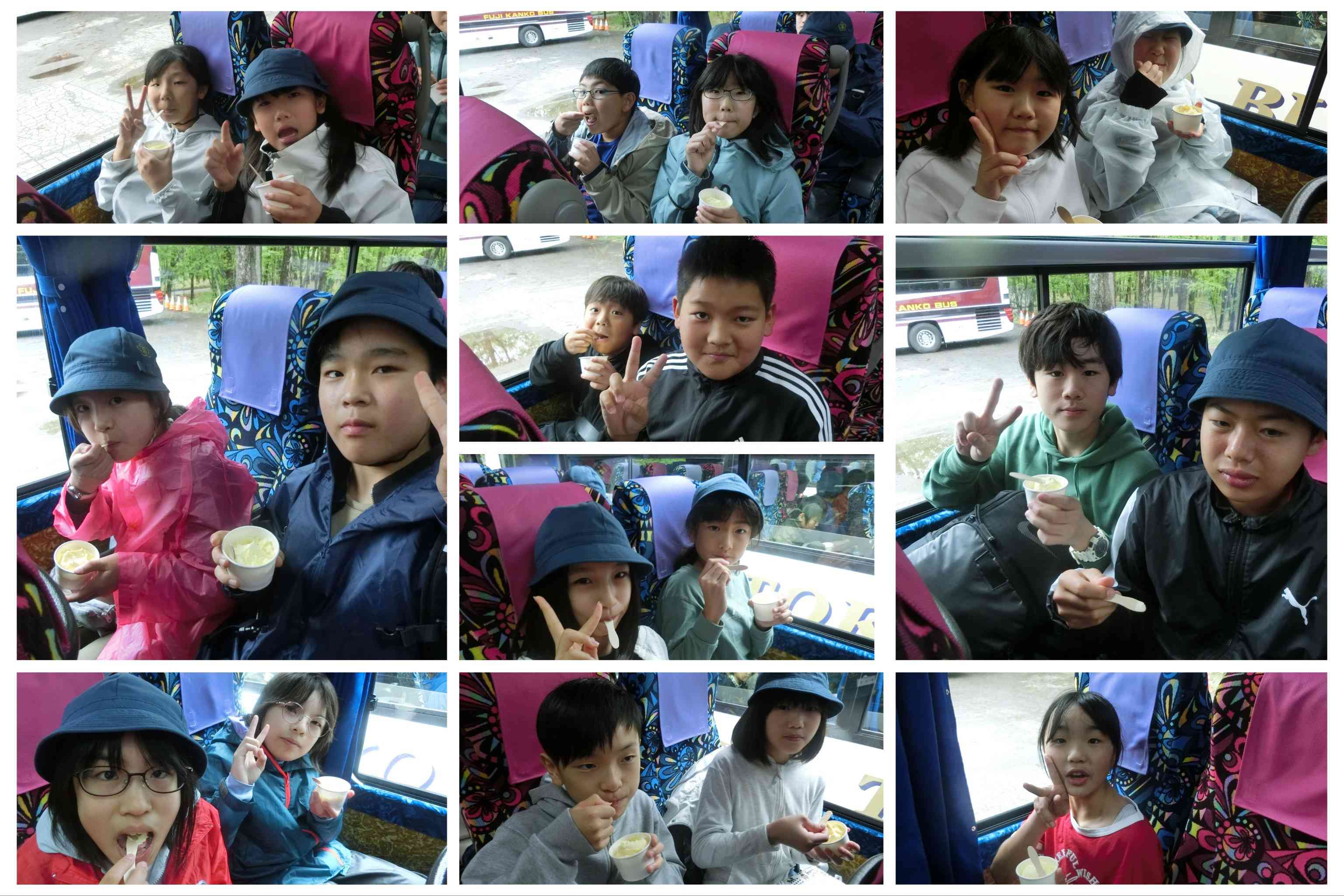 これを楽しみにハイキングを頑張ったと言っても過言ではない、ゴールの光徳牧場でアイスを食べました! 今年からコーンではなく、カップになったアイス。 「美味しい〜」、「うますぎる」、「濃厚」、「お昼ご飯食べなくていいからこのまま宿舎に戻りたい」など、ハイキングを頑張ったからこそ味わえた牧場のアイスに、みんな満足している様子でした。 アイスの後は、雨が降っていたため、バスでお弁当を食べました。 お弁当は例年と違うところに頼みましたが、とても美味しかったです。【添付ファイル】