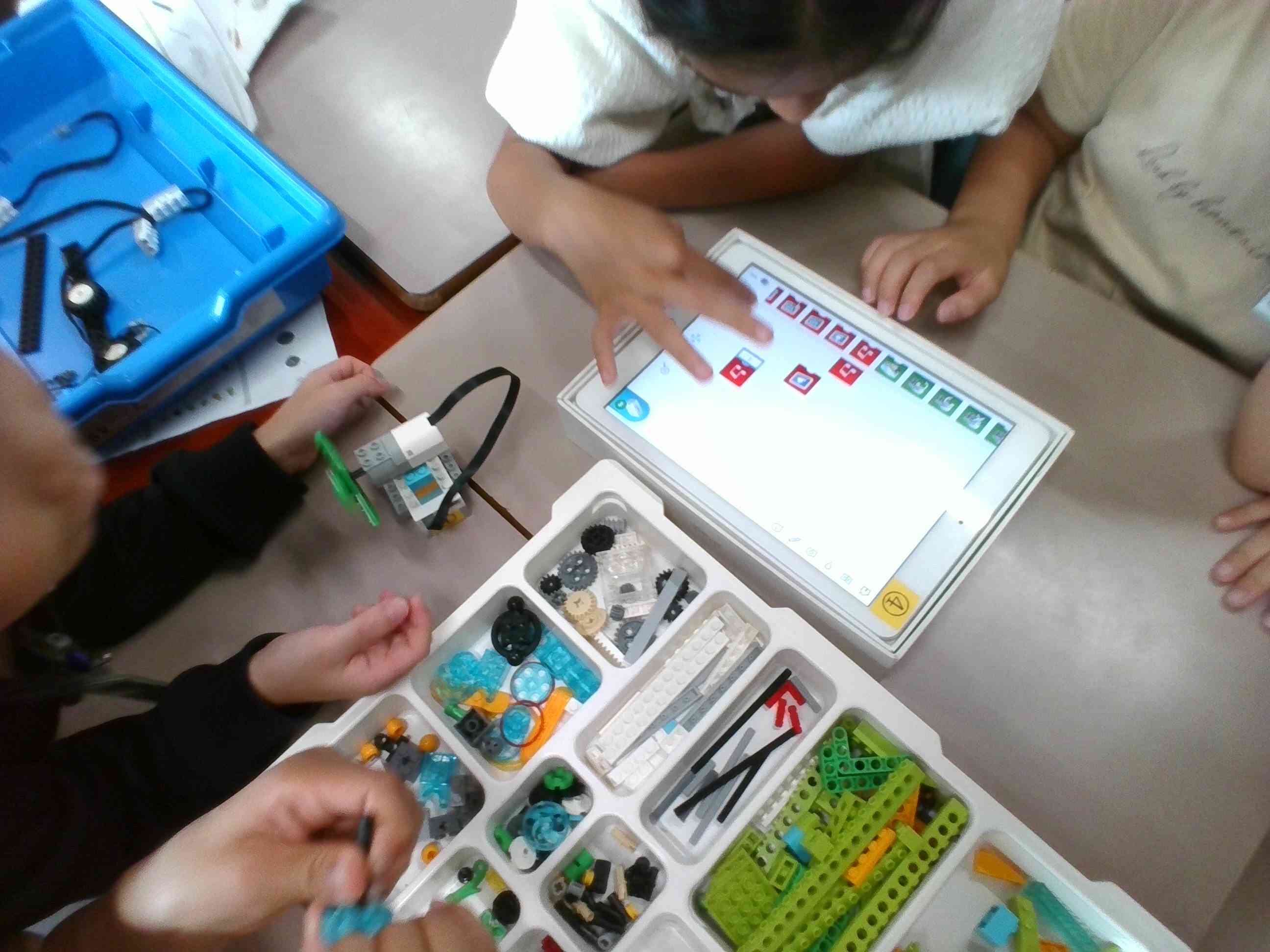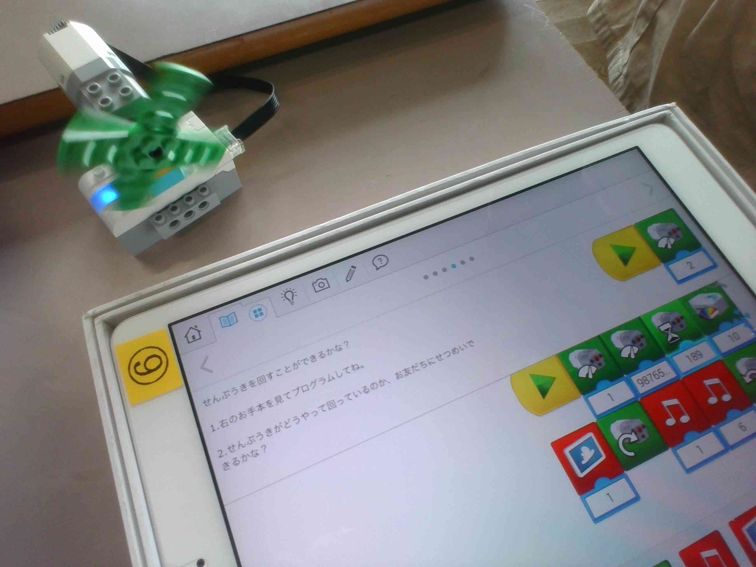 2年生がプログラミング学習を行いました。 iPadを用いてプログラムを作り、レゴで作った扇風機を動かしました。 子どもたちは、普段とは違う学習内容に興味津々。クロームブックではなくiPadを使うことも新鮮だったようです。扇風機の回る速さや流れる音楽などを自由に組み合わせ、楽しくプログラミング学習に取り組んでいました。 「もっと難しいプログラムを作ってみたい!」「次は違うものを動かしてみたい!」といった声があがり、プログラミング学習への意欲溢れる2年生でした。【添付ファイル】