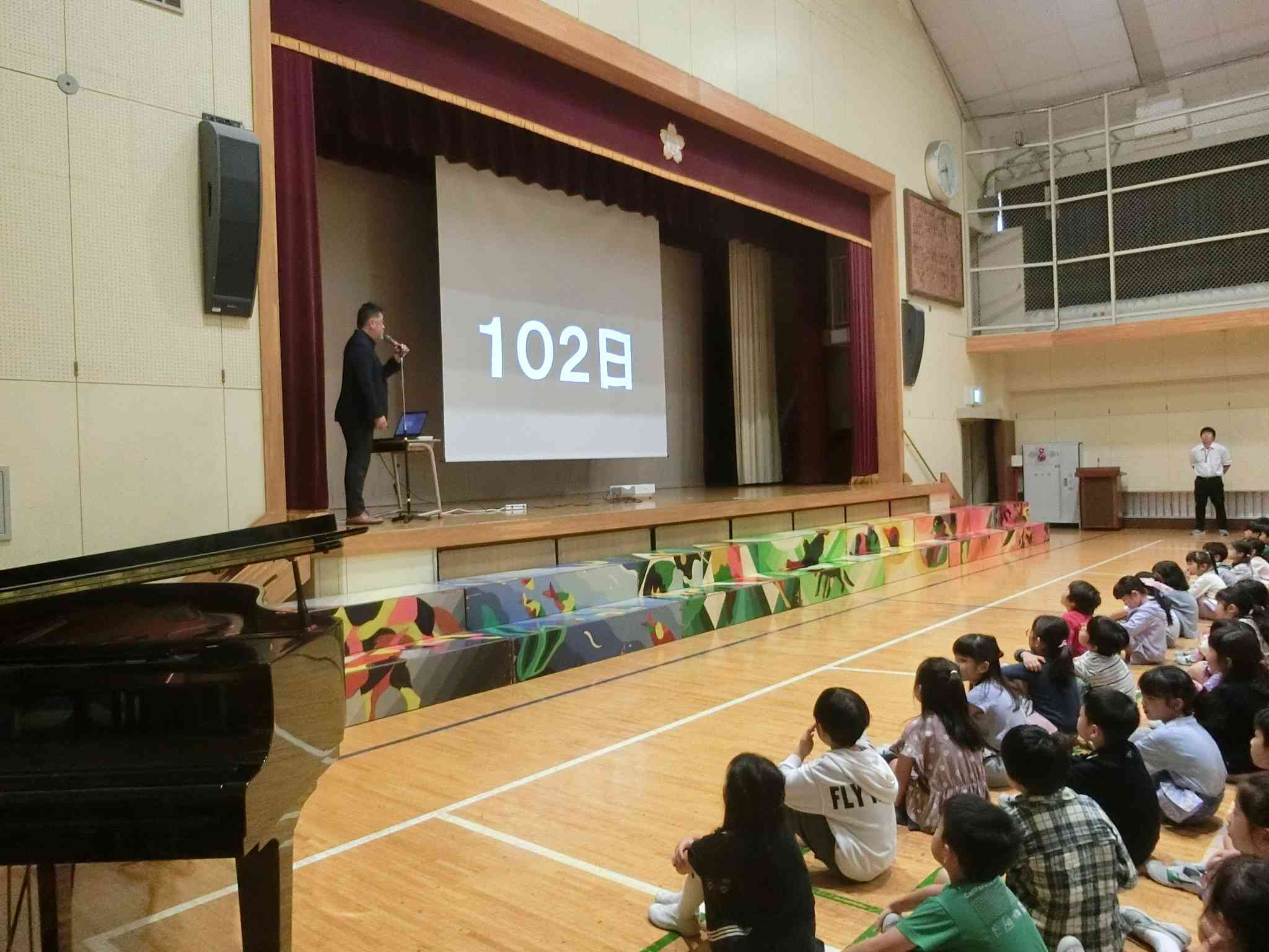 10月11日(金)の朝の時間に、前期の終業式を行いました。 校長先生のお話では、102日あった前期の学校生活を写真とともに振り返りました。 ゴールデンウイークが終わってすぐ運動会があったこと、日光移動教室や岩井臨海学校、社会科見学など校外で学習したこと、消防写生会やそら豆の皮むき体験があったこと、学校にオーケストラが来るなど芸術に触れたこと、6年生は水泳記録会や砂町地区パレードがあったことなど、座学だけではない学びが多い前期だったことを写真を通してこどもたちも振り返っていました。 後期も学校に来たからこそできる学習や体験を大切にしながら、教育活動をすすめていきます。 ぜひご家庭でも、「あゆみ」をもとに前期を振り返り、後期の目標について話し合ってもらえると幸いです。【添付ファイル】