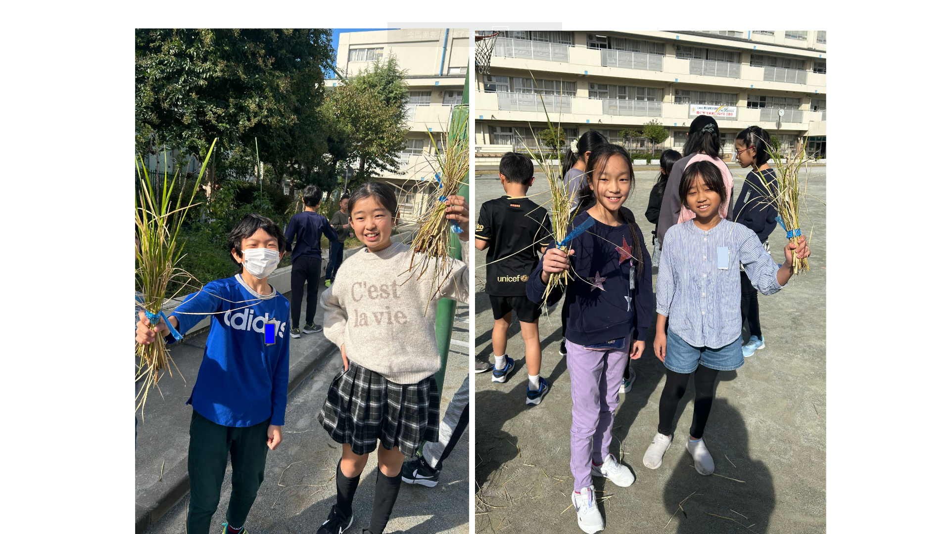 5月に植えたバケツ稲が実り、収穫をしました。残念ながら豊作とはいきませんでしたが、わずかに実った稲を刈り取り、教室のベランダに干しました。10日間ほど乾燥させた後、脱穀をする予定です。実際に稲を育てることを通して、米作りの難しさや農家の苦労が分かりました。
