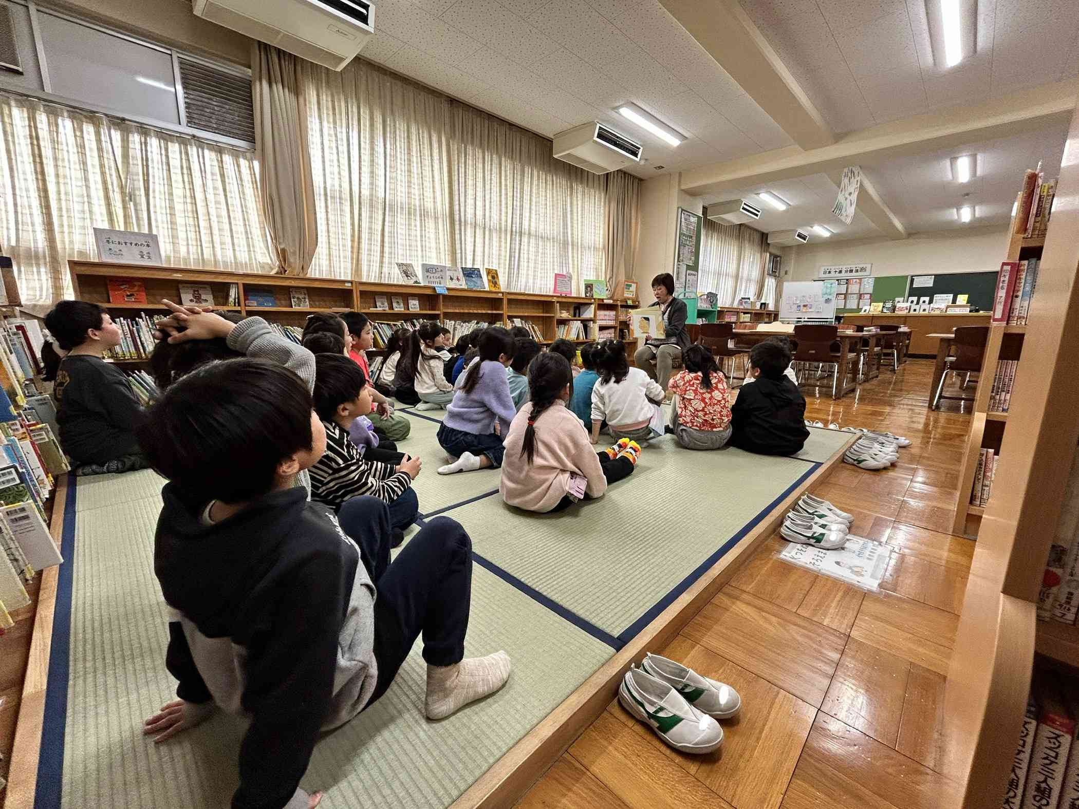 本日の図書の時間には、紙芝居の読み書かせがありました。 「えのなかのゆうれい」というお話でした。 楽しいだまし絵やしかけ絵が出てきて、子ども達は興味津々でした。