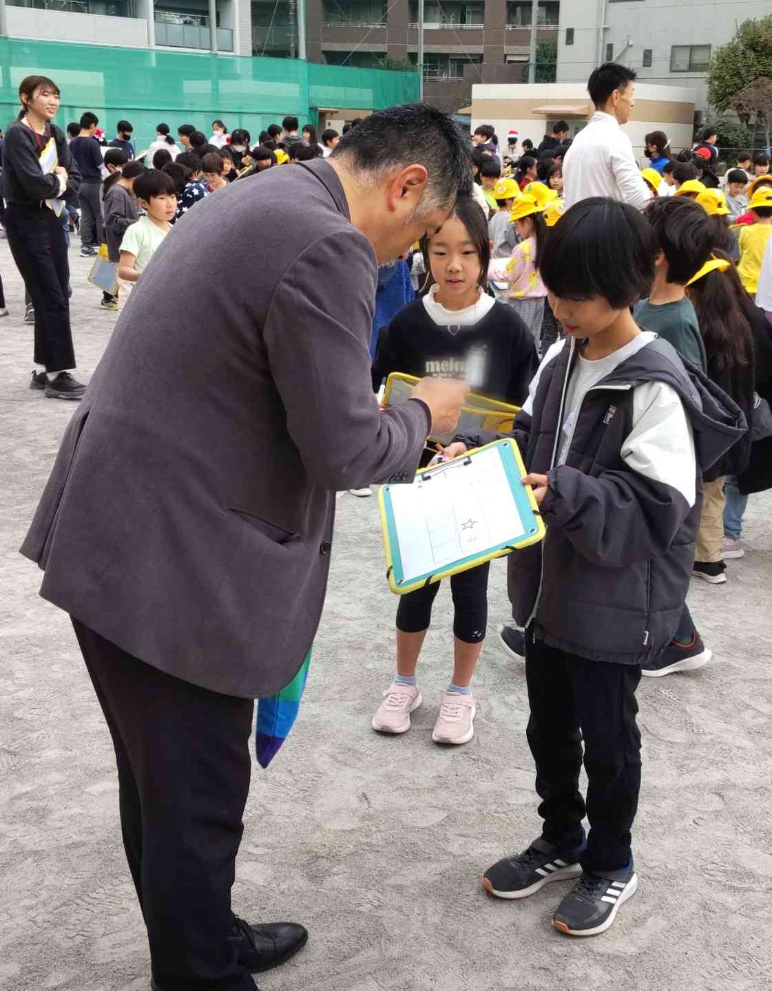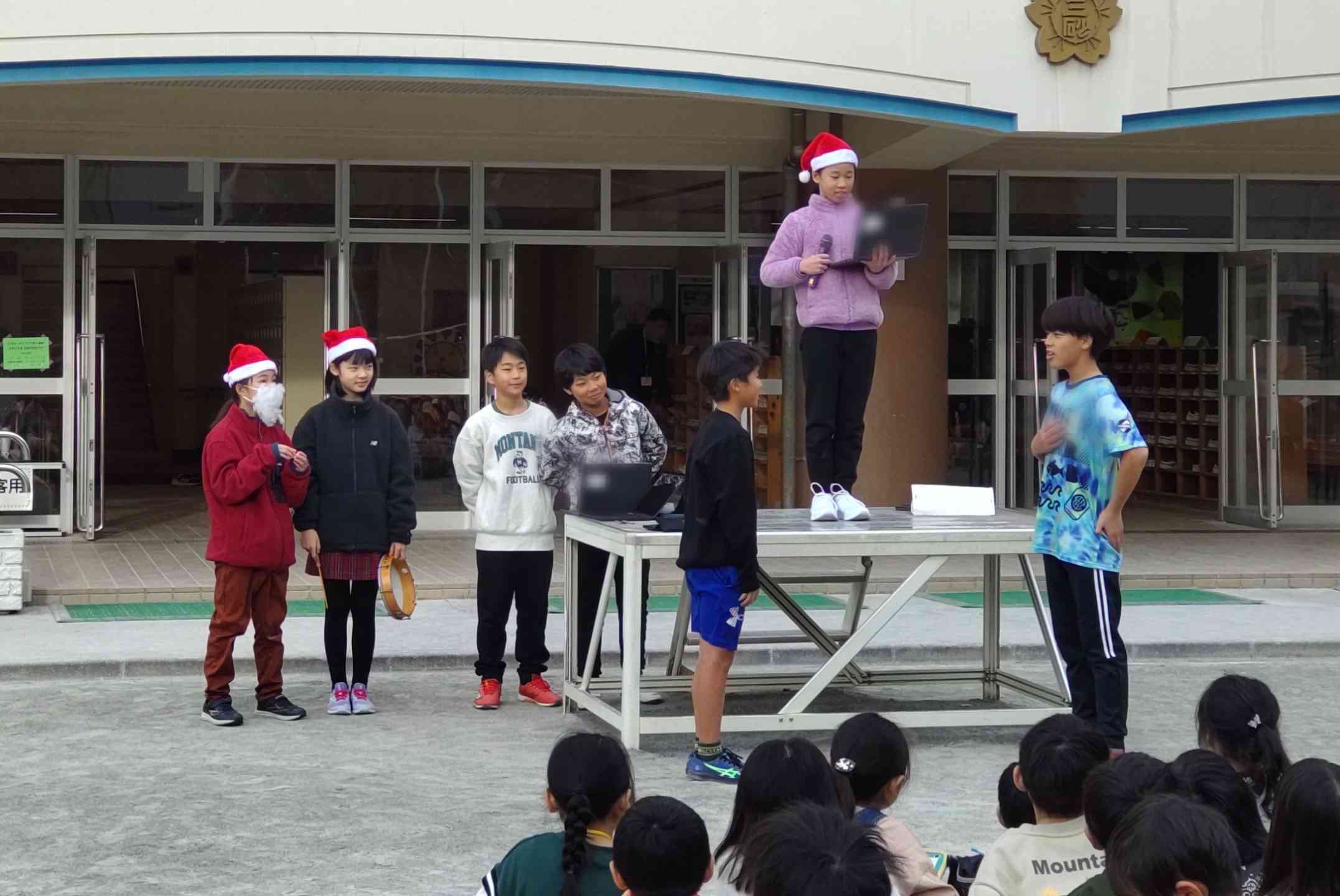 12月13日(金)の朝の活動は、「サインくだサインビンゴ集会」でした。 三砂小ではおなじみの「サインくだサイン」に「ビンゴ」の要素を取り入れた、集会委員の5・6年生が新しく考えた集会です。 各マスには、「朝ごはんがパンだった人」や「音楽会が楽しかった人」、「昨日の給食をおぼえている人」、「サンタ帽をかぶっている人」などが書いてあり、さらにビンゴ用紙も7種類作り、誰にどのビンゴ用紙が配られているかもわかりません。 いつも話したことがない人と会話をすることを目的にした集会でした。 集会委員は、サインのもらい方が分かりやすいように見本の劇も見せました。 こどもたちは、積極的に声を掛けながらサインをもらったり、高学年から低学年に声を掛けたり、優しく教えてあげたりする姿が見られました。 また、「先生」というマスもあり、「先生ですか?サインくだサイン」と合言葉を言って、先生たちからサインをもらっている様子も見られました。【添付ファイル】