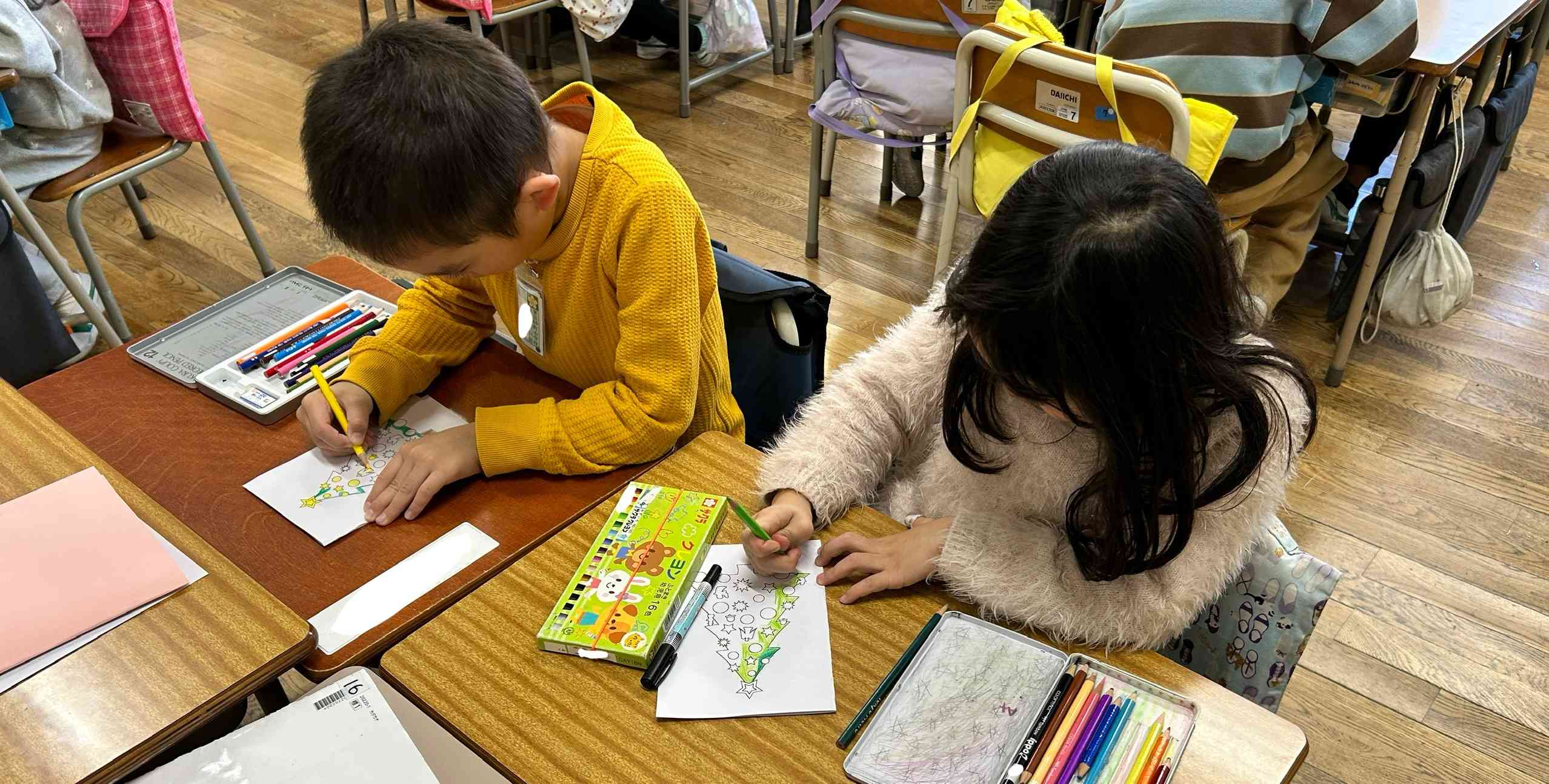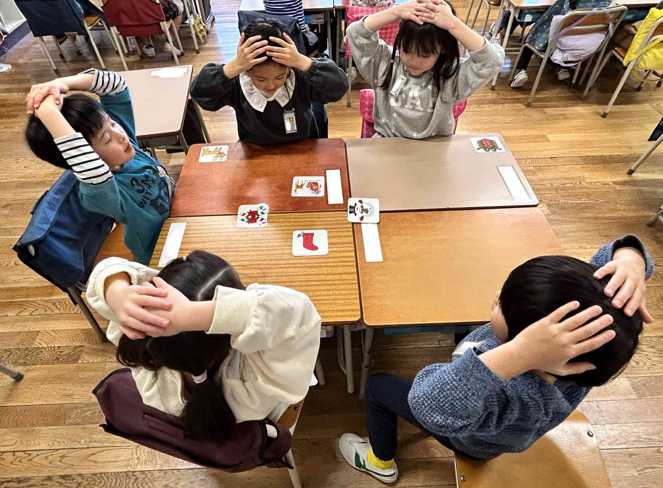 本日の英語に慣れ親しむ時間では、クリスマスについての学習をしました。歌を歌ったり、発音の練習をしたりしました。最後は、クリスマスカードを書いて楽しんでいました。