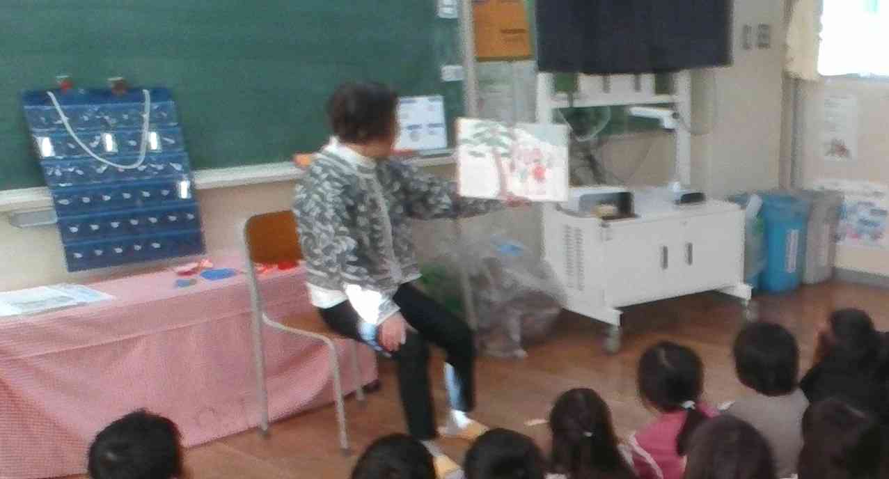 ボランティアのみなさんによる読み聞かせが朝の時間にありました。集中して楽しそうに聞くことができました。