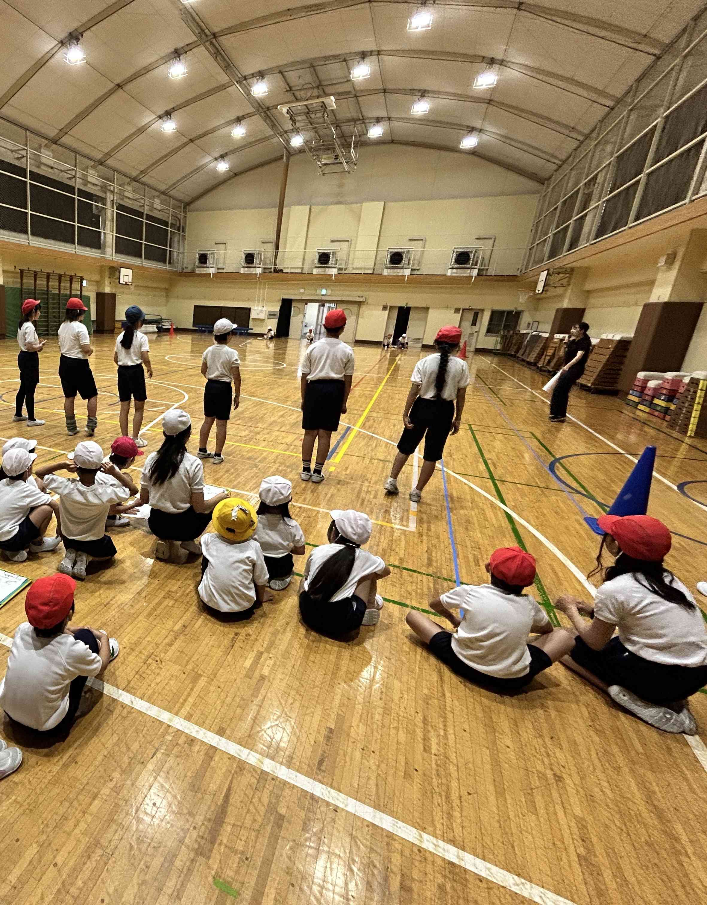 1年生のシャトルランの記録を6年生がしてくれました。 まず初めに6年生のお手本を見てから、1年生も初めてのシャトルランに挑戦しました! 6年生からの「頑張ってね」や「何回目標にする?」という言葉がけによりみんな頑張ることができました。いつも優しく関わってくれて感謝ですね。