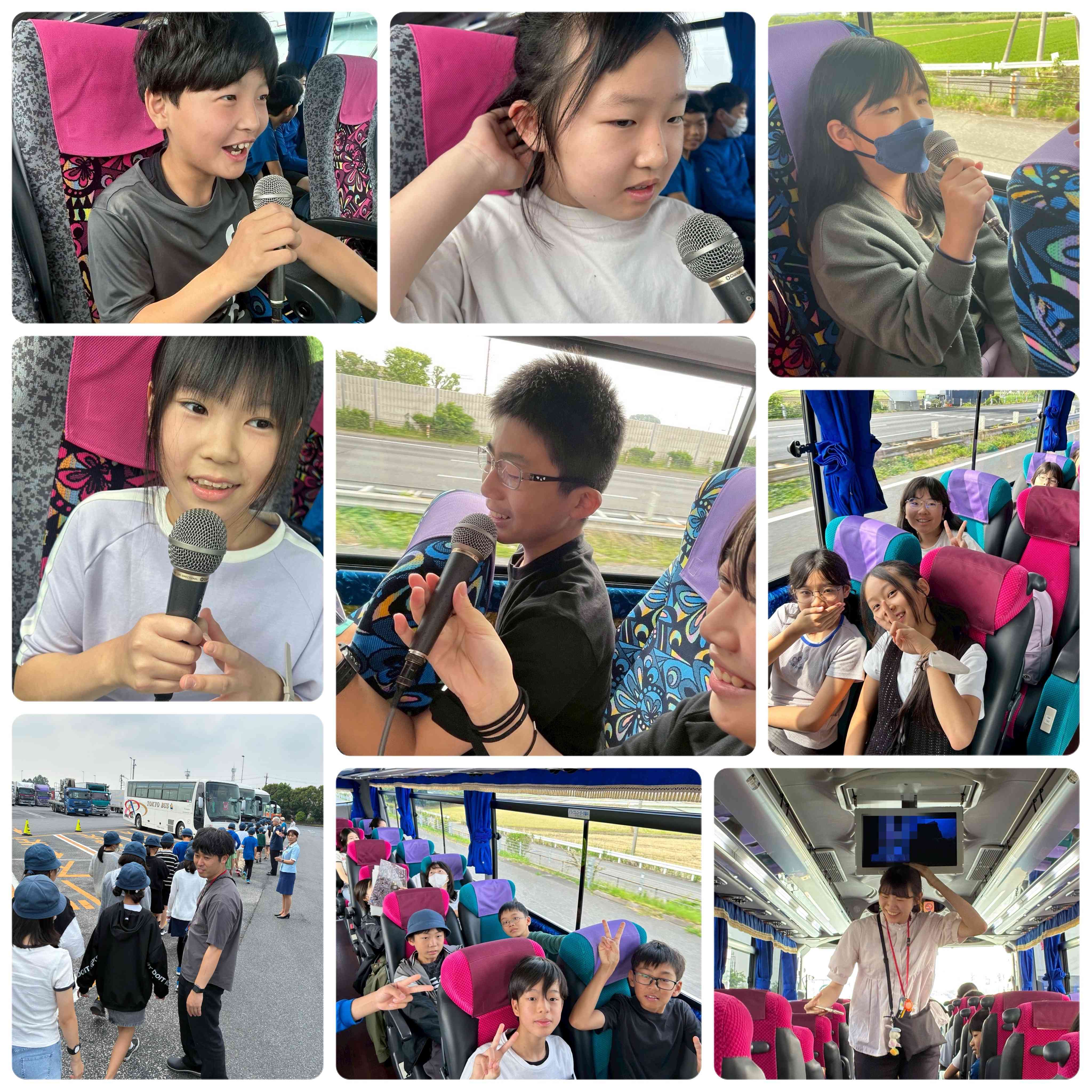 トイレ休憩のため予定より10分遅れて羽生PAに到着しました。道中、1組はDVD鑑賞、2組と3組はカラオケ大会をして楽しんでいます。みんな、天井から降りているモニターに頭をぶつけないよう車内での移動には気を付けてね。