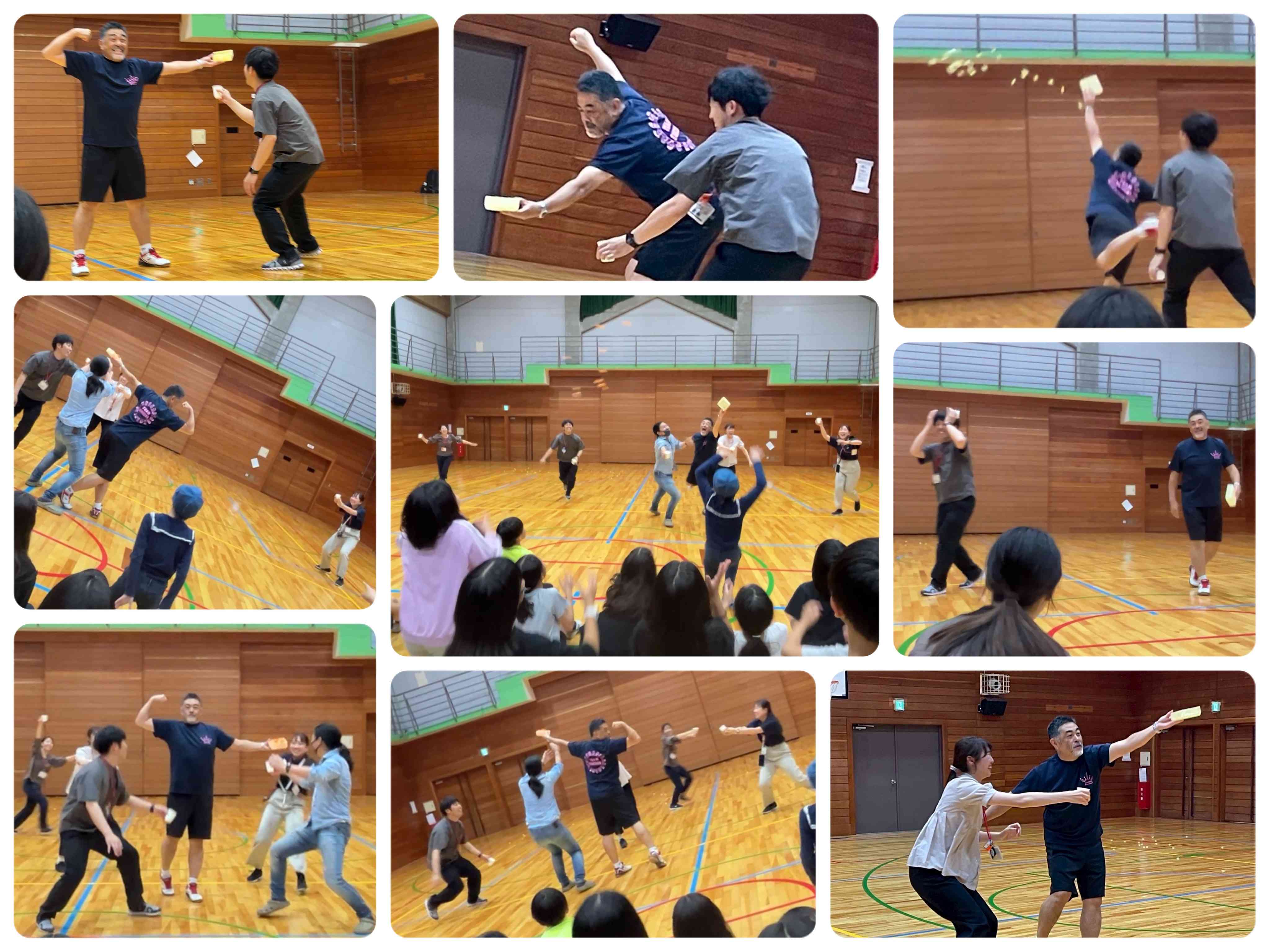 初日の夜は、レク係のこどもたちが中心となって進める「日光わくわく三砂発表会」です。クイズあり、お芝居ありの1時間はあっという間!最後、教員チームもわくわくさせてもらったお礼に打ち合わせ時間0(ゼロ)で、あの筋肉アメ投げゲームを披露しました。ヤーーーーィ!