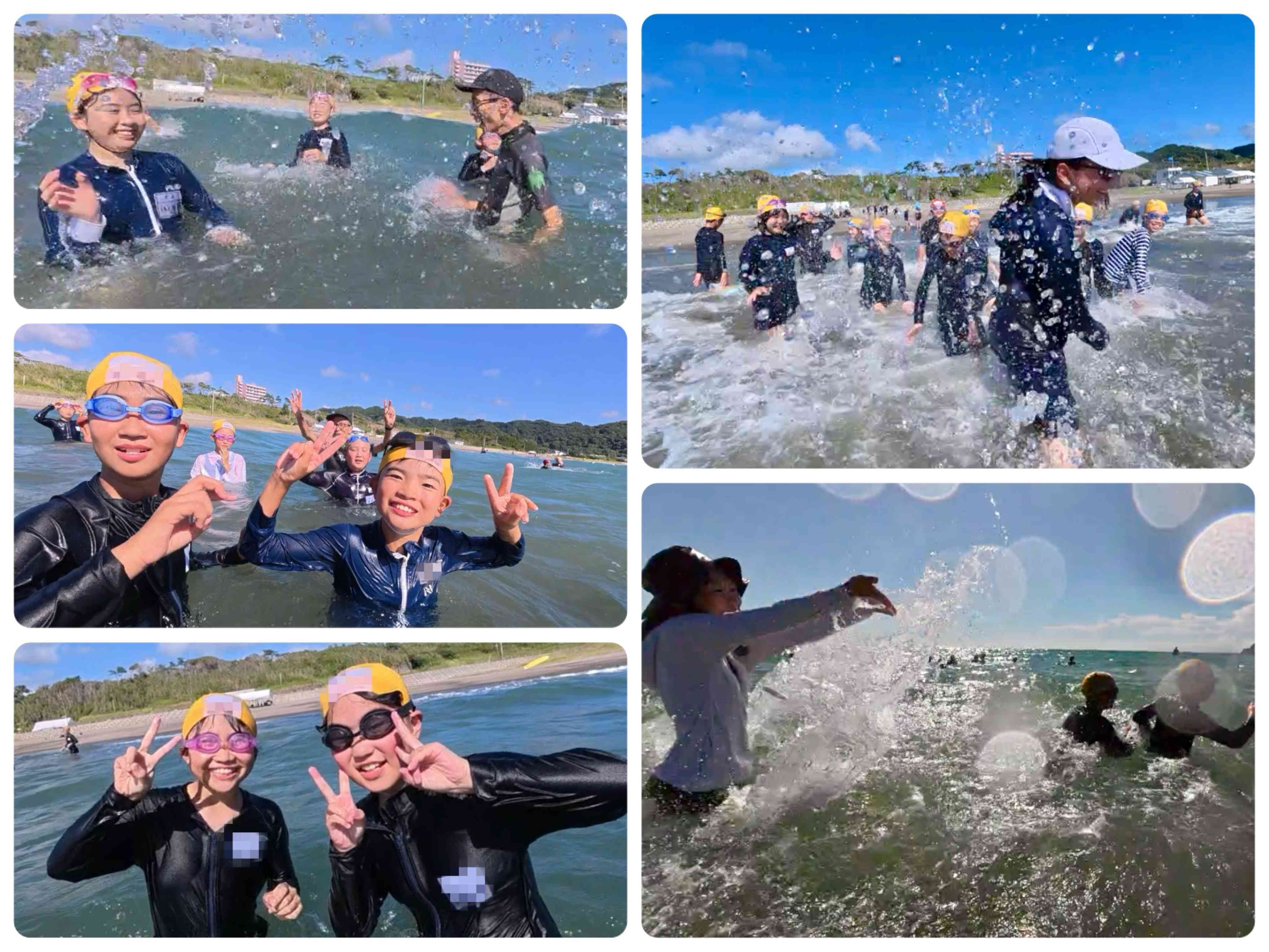 「しょっぱい!」「目にしみる!」と言いながら水をかけたり、かけられたり…みんなで入る海ってとにかく楽しい!