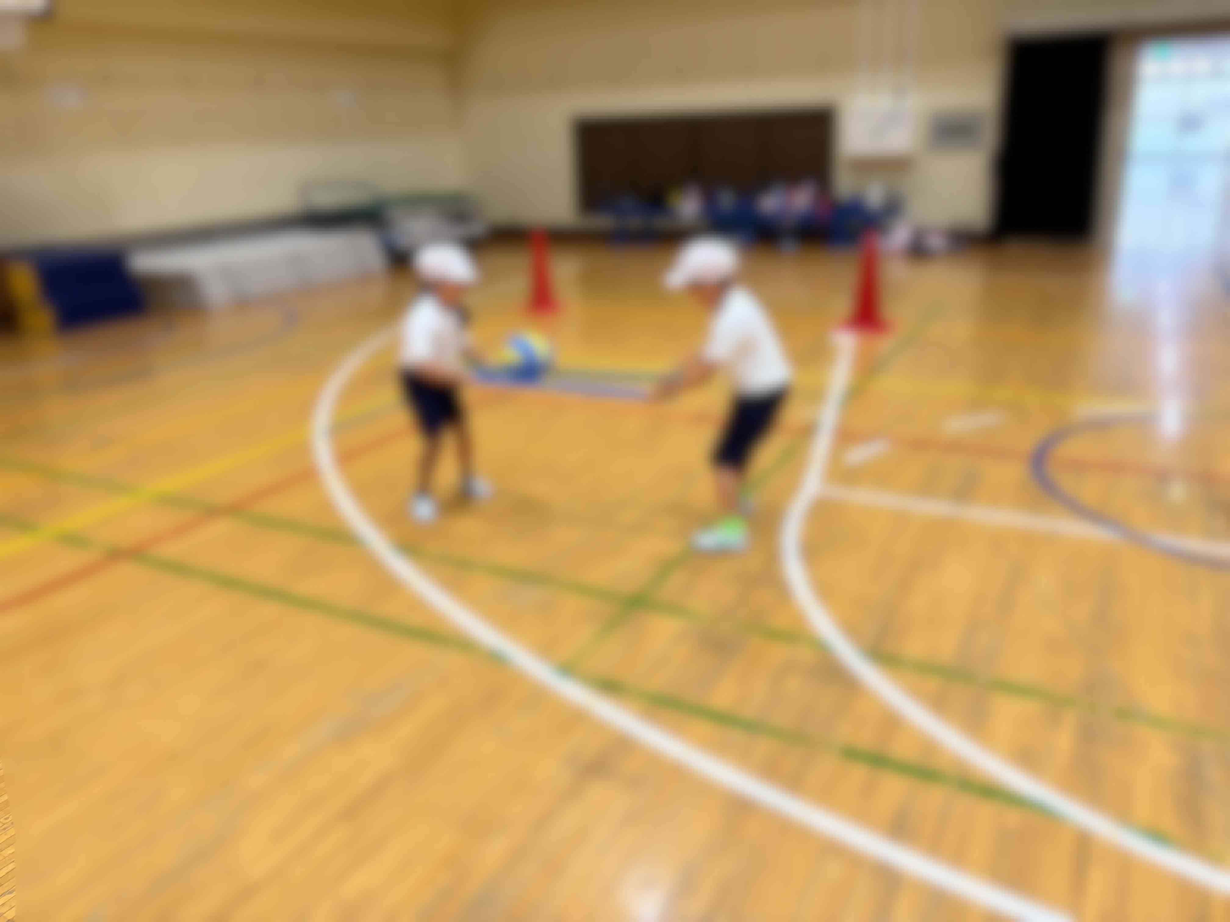 体育の学習では、ボールを使った遊びをしています。 ペアでボールを投げあったり、的当てをしたりする他に本日は体操棒とボールを使ってボール運びゲームをしました。 ペアで協力しながらボールを運びました。 はじめは慎重にボールを運んでいましたが、慣れてくると走りながらボールを運ぶことができました。