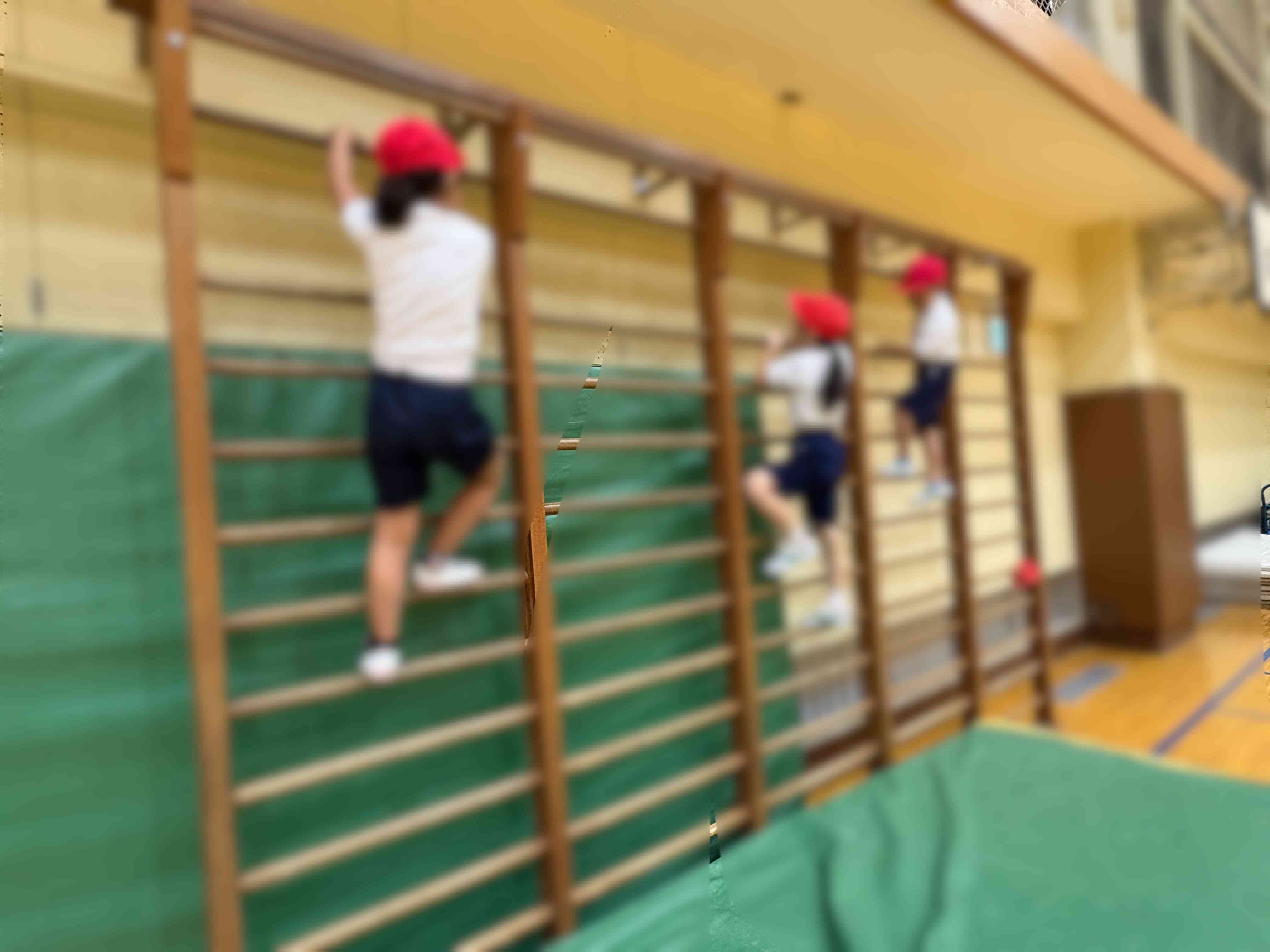 本日の体育では肋木を使いました。登り下りや、ぶらさがり、跳び下りなど様々な方法で身体を動かし、肋木遊びに挑戦してすることができました。