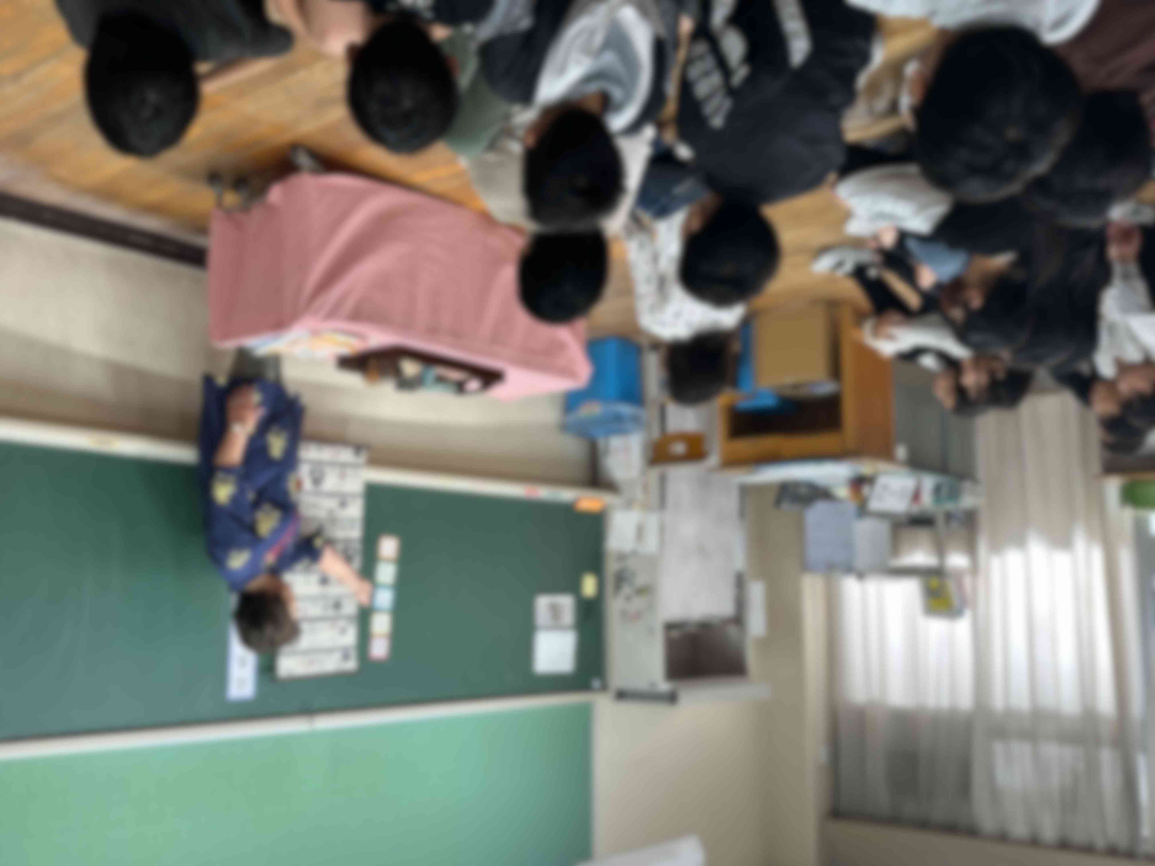 朝読書の時間に全クラスで読み聞かせをしてもらう時間があります。 6年生はこの時間を使って、図書の遠藤先生から、日本の四季と「おもてなし」についてお話していただきました。 四季がある日本は、季節によって器を使い分けることや、茶道の世界に生きる「おもてなし」の精神を大切にしていることなど、実物を見せながらの説明に真剣に耳を傾けていました。