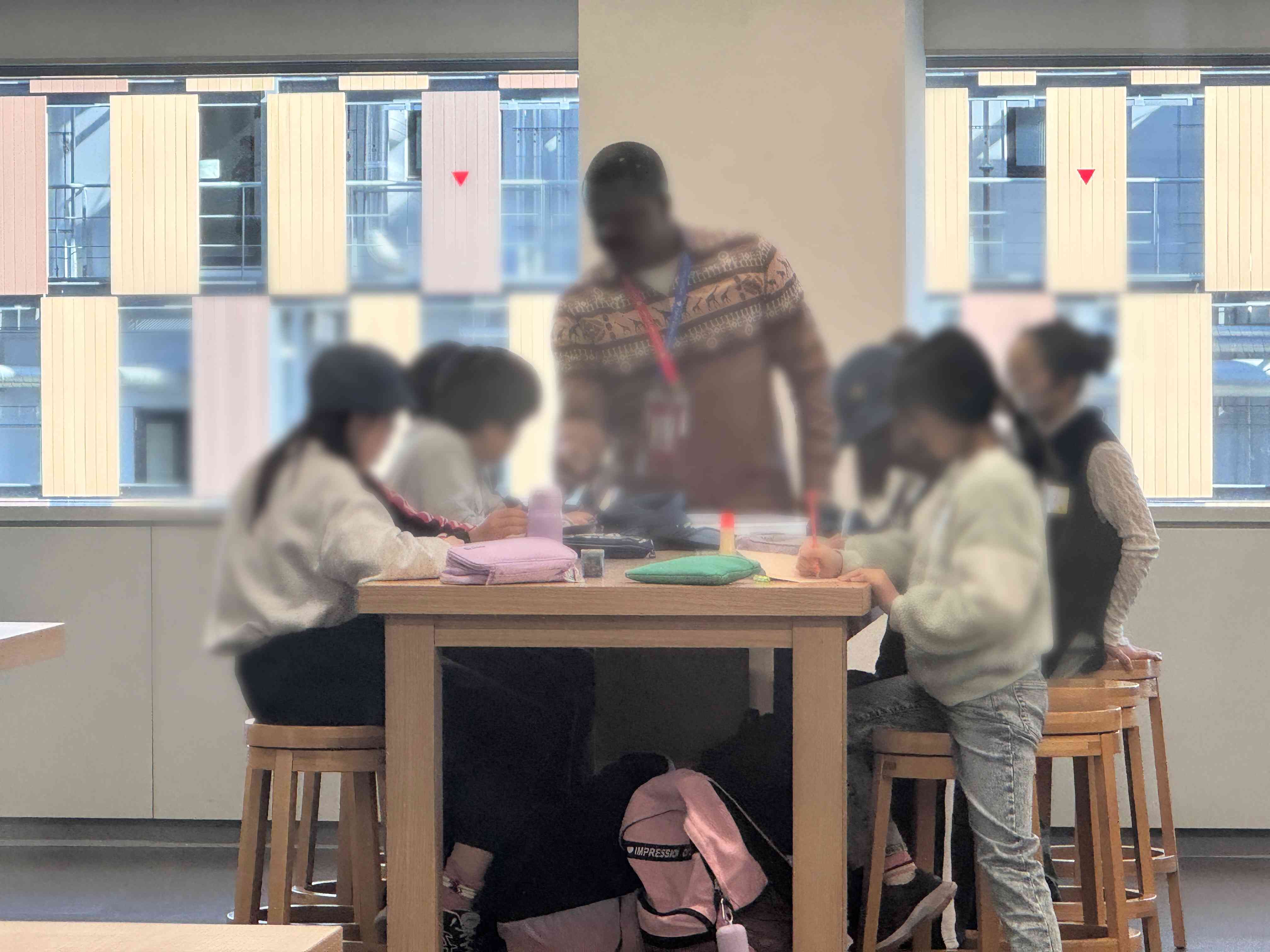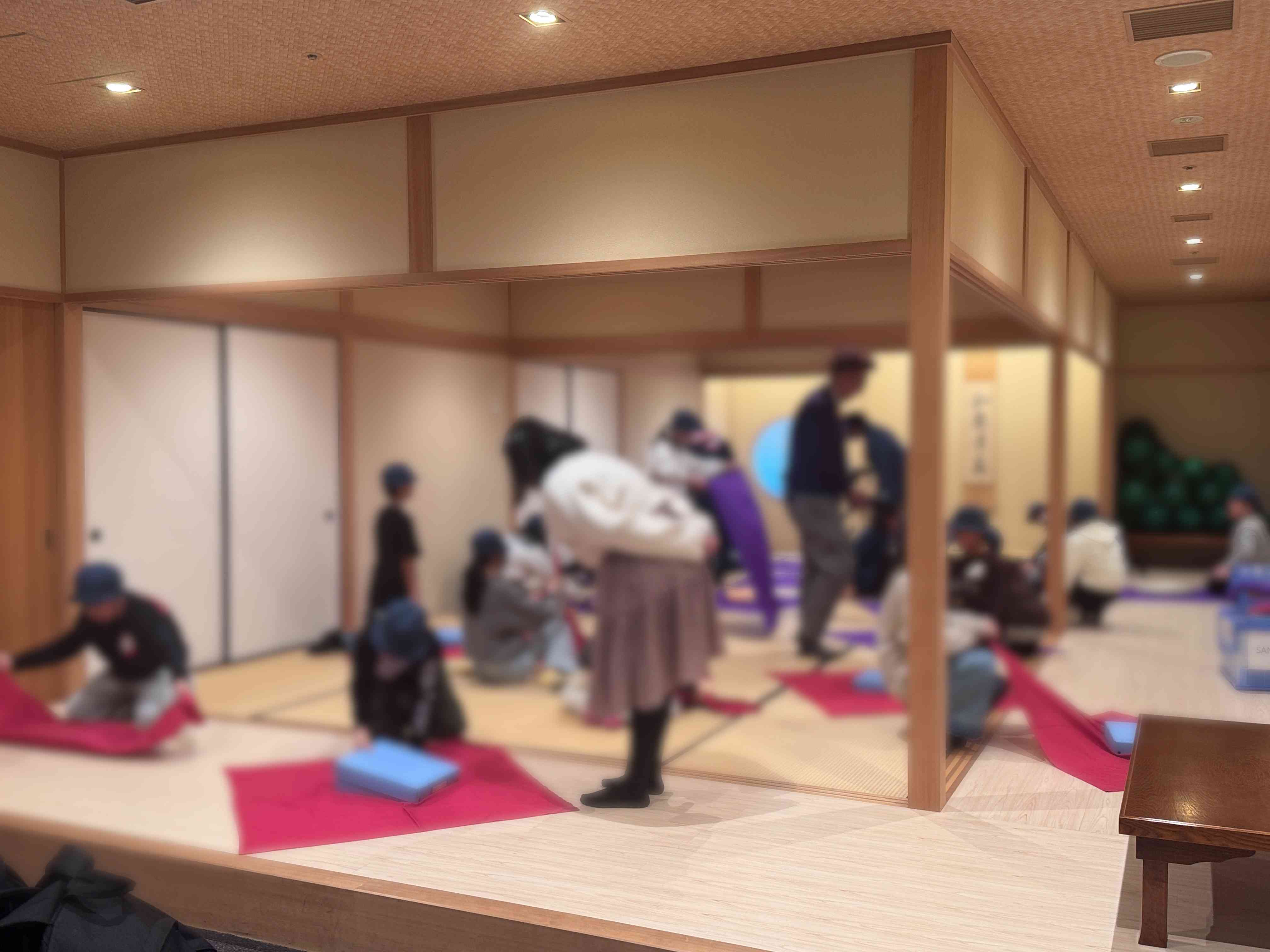 5年生のTGGの続きです。午前中後半の活動は、ふろしきを使った包み方、コマ撮り動画の作成などでした。英語を使ってやり方を聞いて学んだり、発表したりしていました。このあと、お弁当を食べ、午後にもう一つ体験を行います。